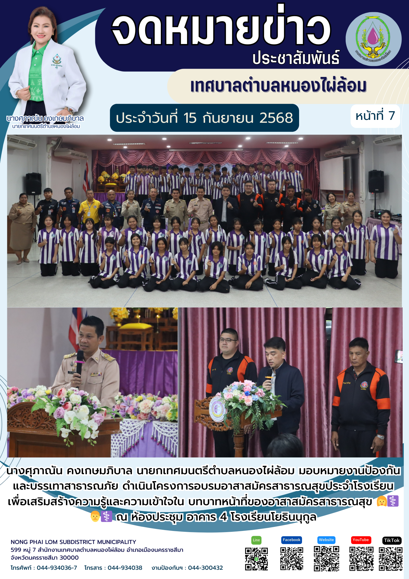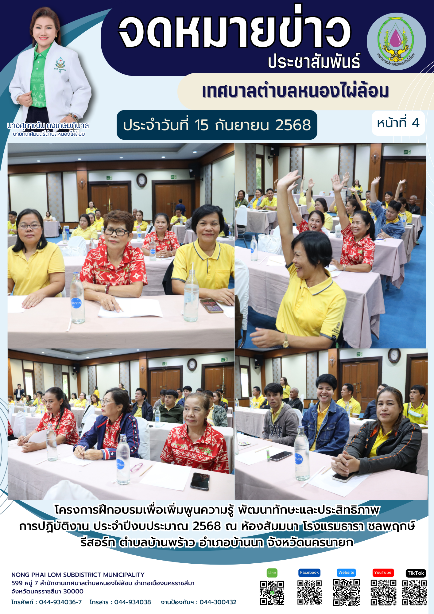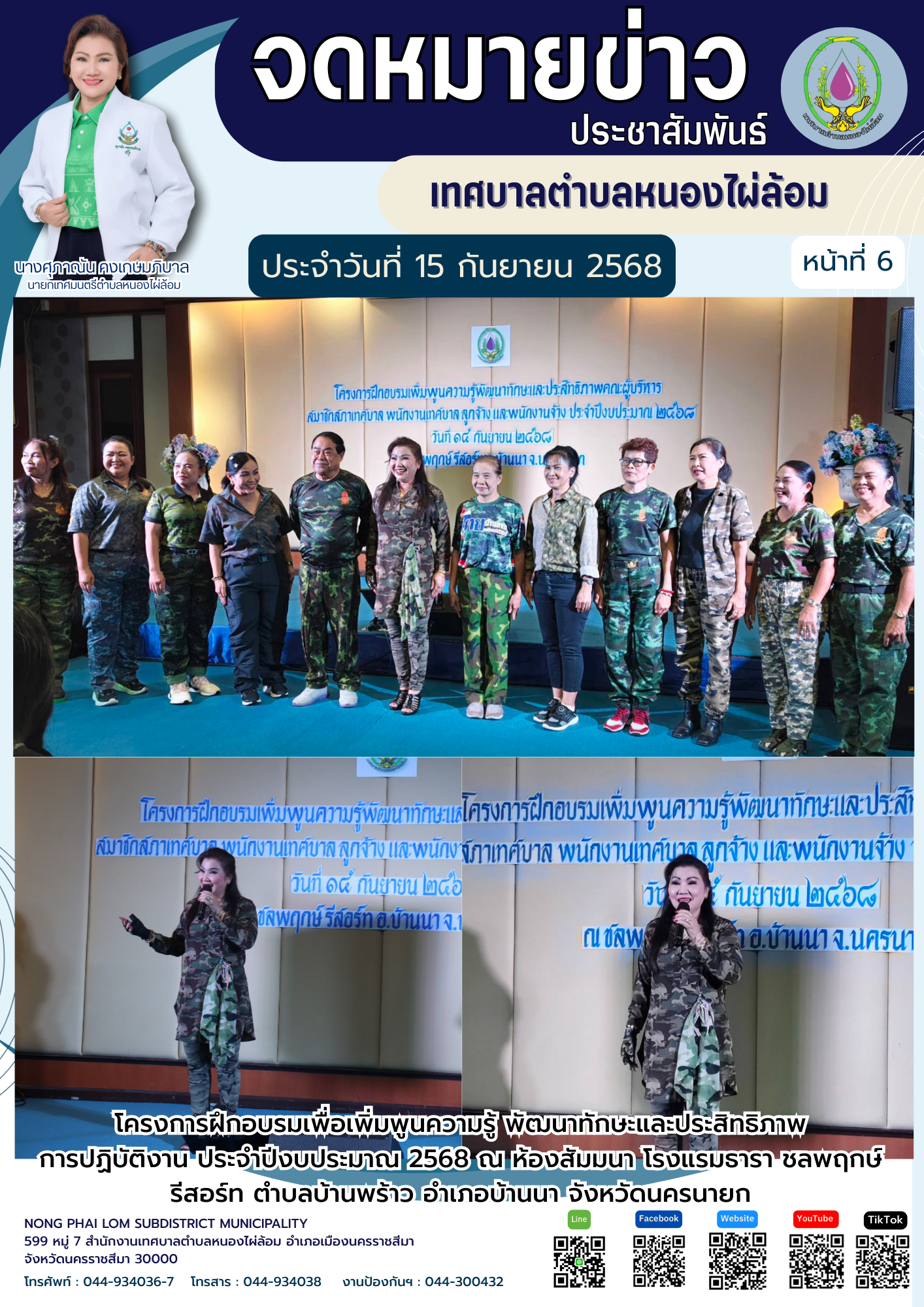 จดหมายข่าวเทศบาลตำบลหนองไผ่ล้อมประจำวันที่ 15 กันยายน 2568