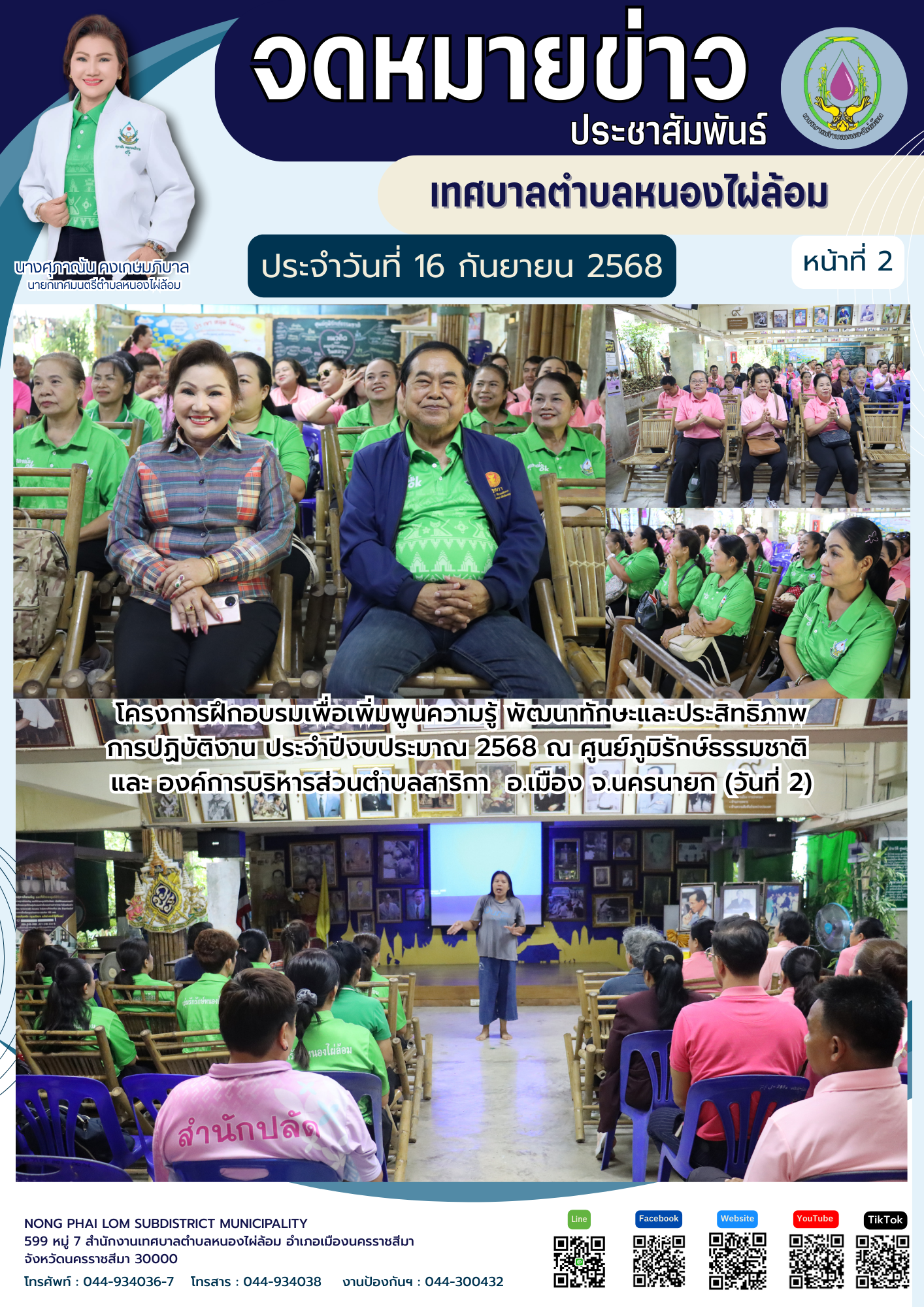 จดหมายข่าวเทศบาลตำบลหนองไผ่ล้อมประจำวันที่ 16 กันยายน 2568