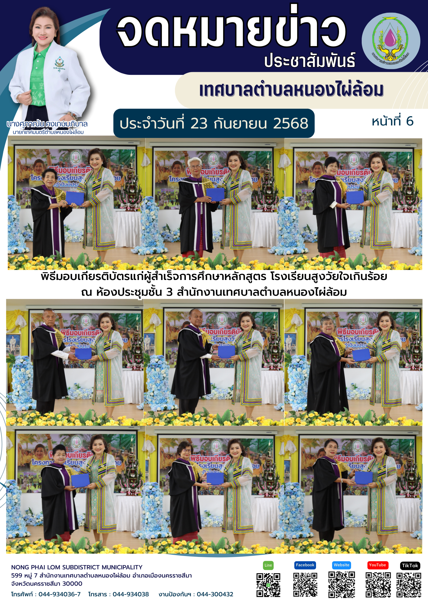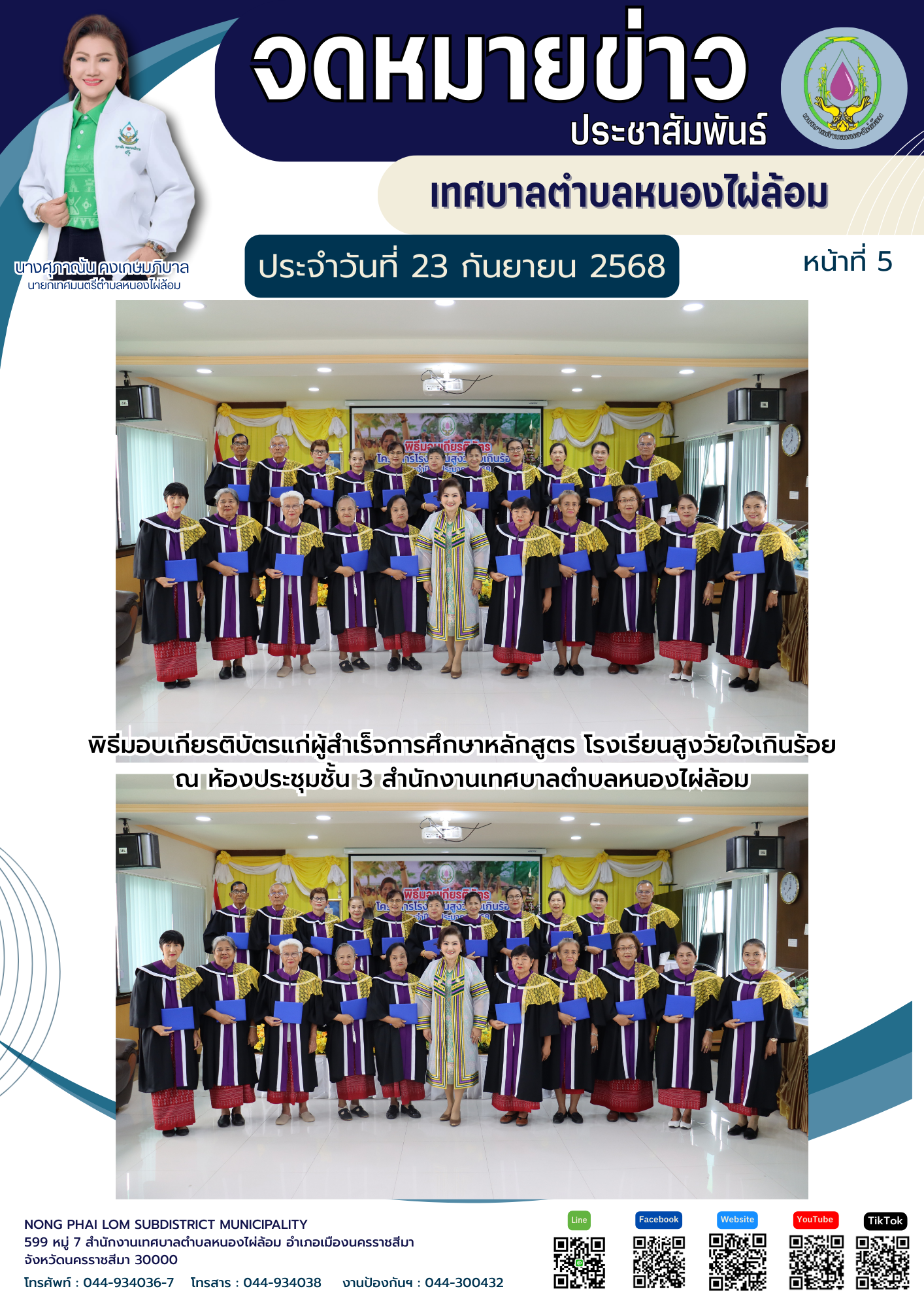จดหมายข่าวเทศบาลตำบลหนองไผ่ล้อมประจำวันที่ 23 กันยายน 2568