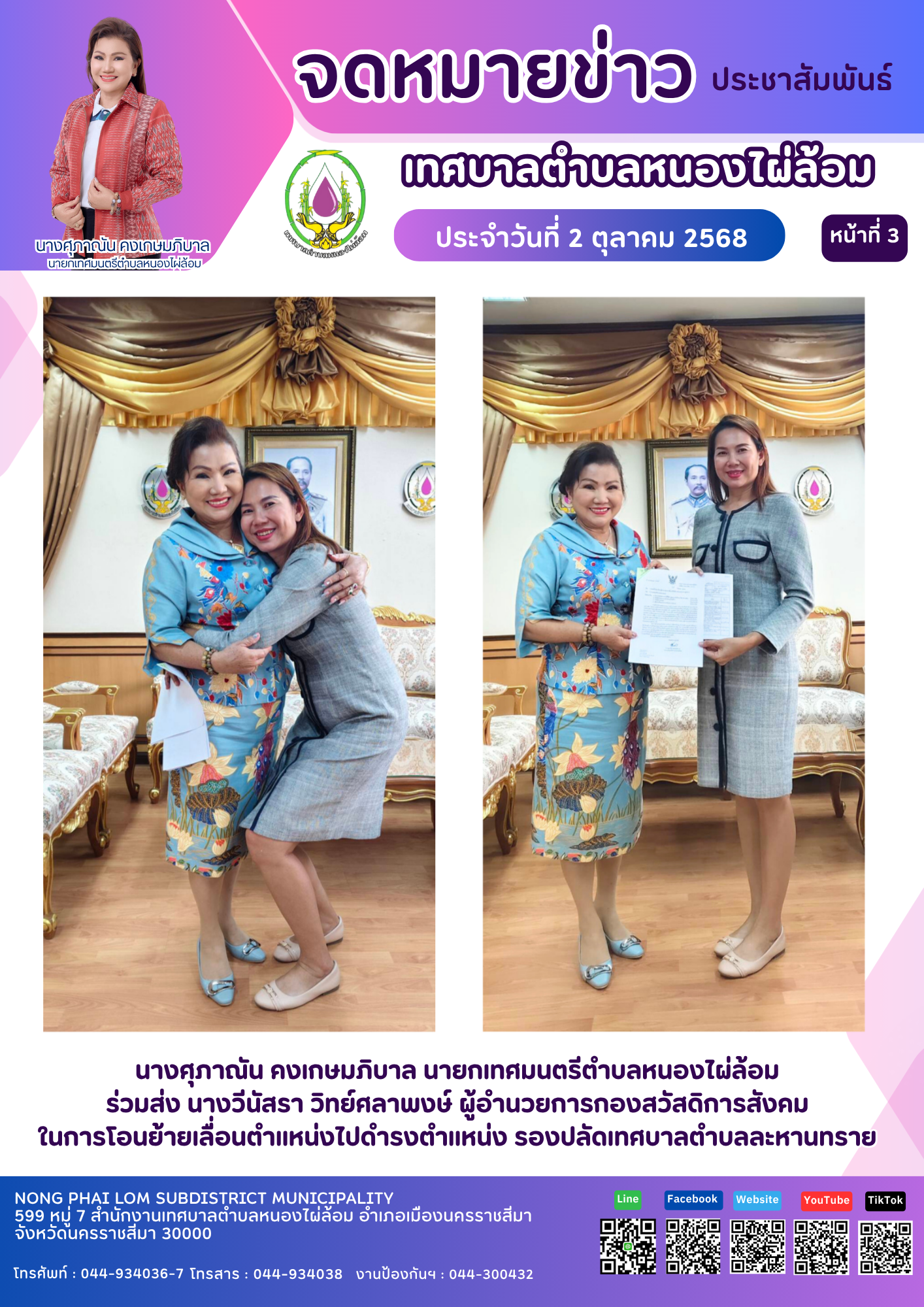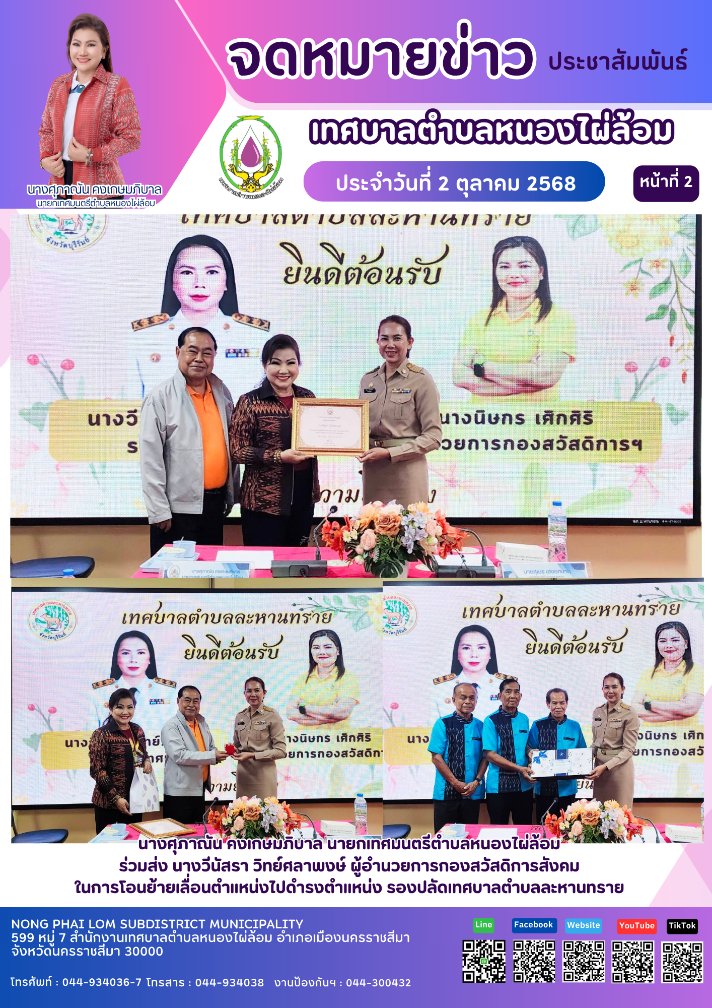 จดหมายข่าวเทศบาลตำบลหนองไผ่ล้อม ฉบับประจำวันที่ 2 ตุลาคม 2568