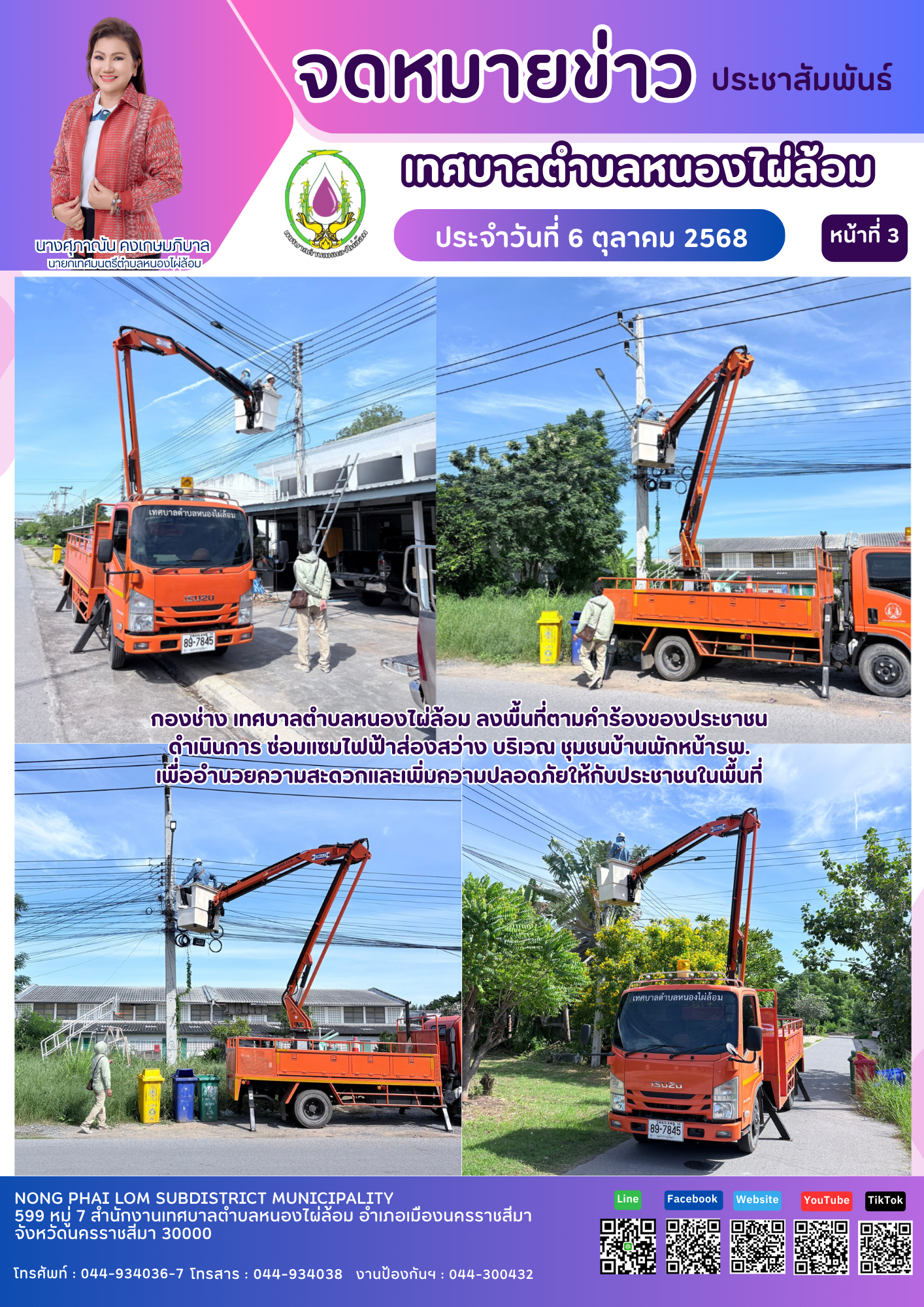 จดหมายข่าวเทศบาลตำบลหนองไผ่ล้อม ฉบับประจำวันที่ 6 ตุลาคม 2568