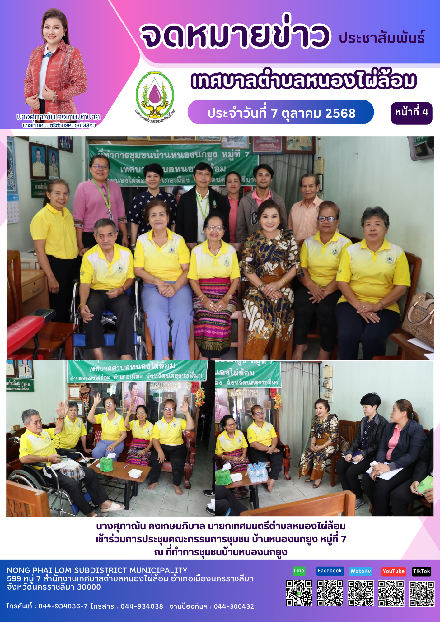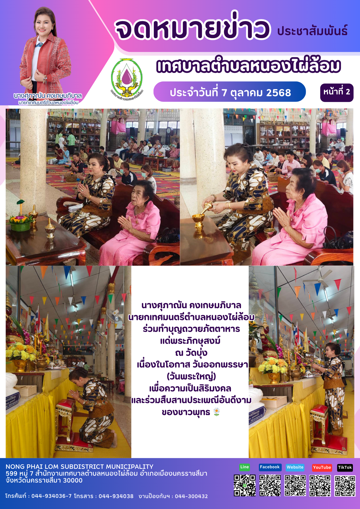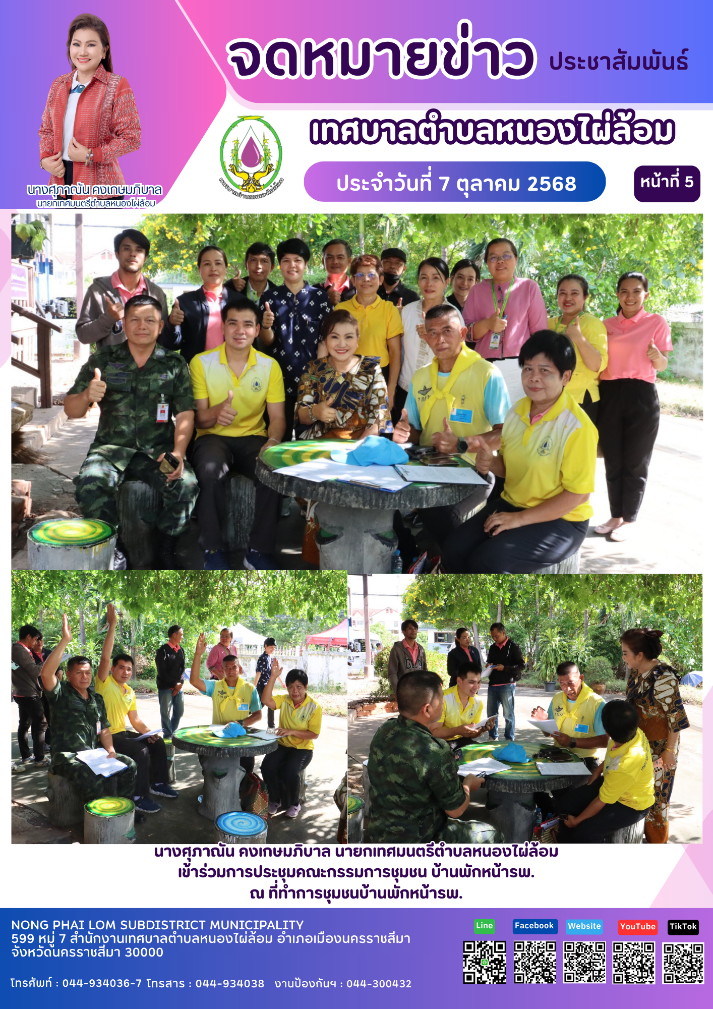 จดหมายข่าวเทศบาลตำบลหนองไผ่ล้อม ฉบับประจำวันที่ 7 ตุลาคม 2568
