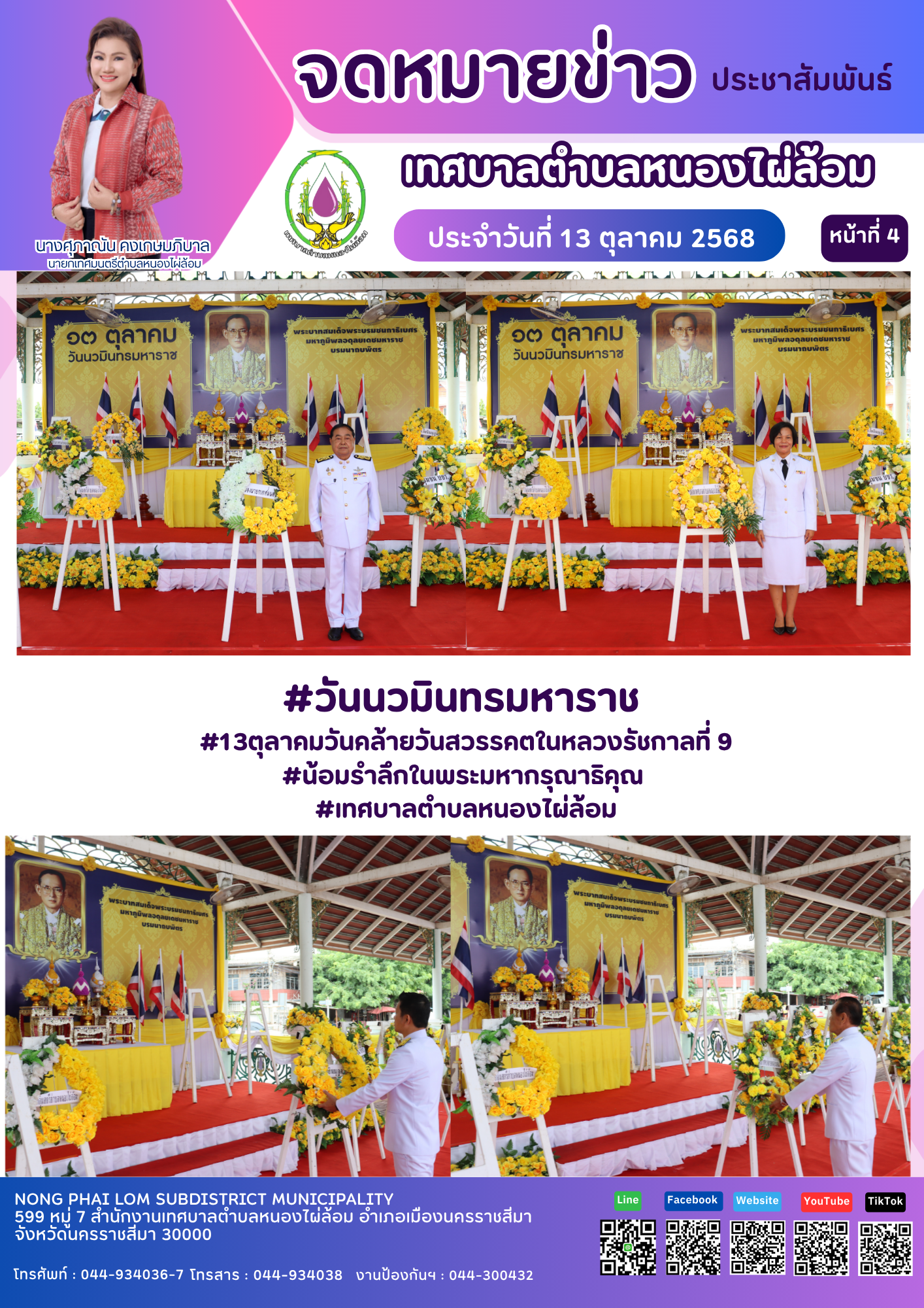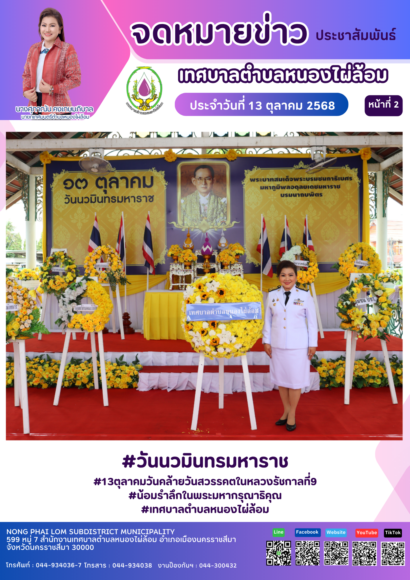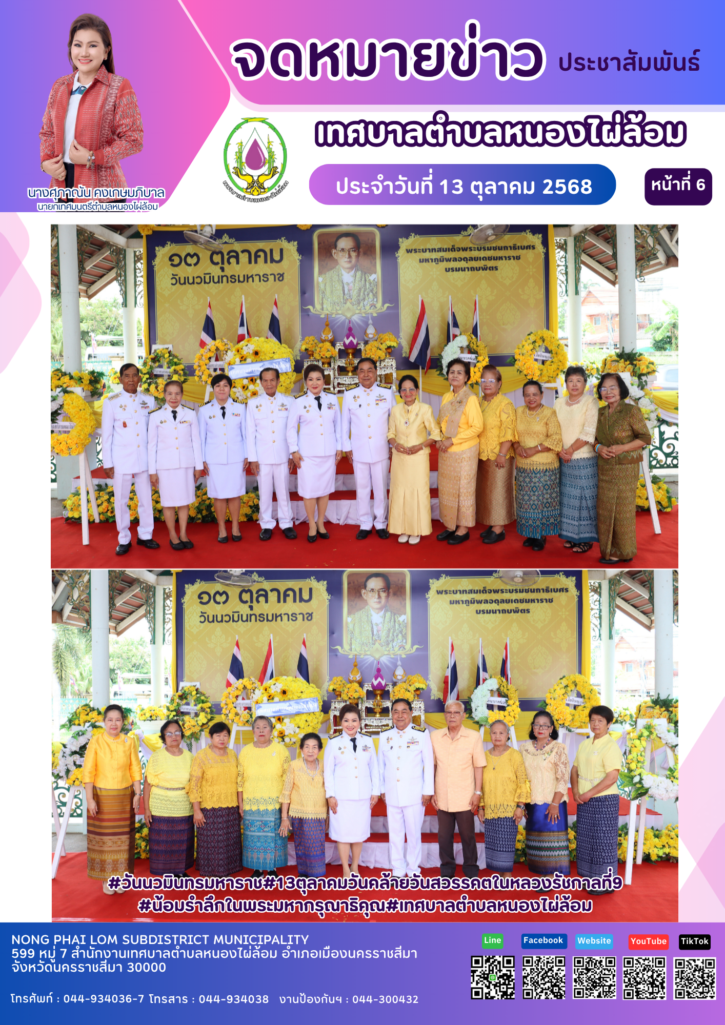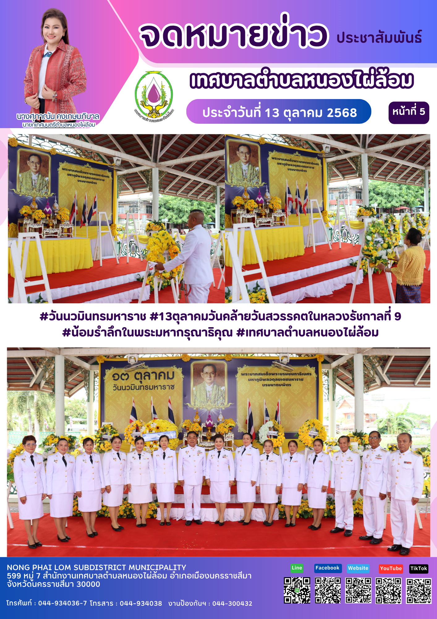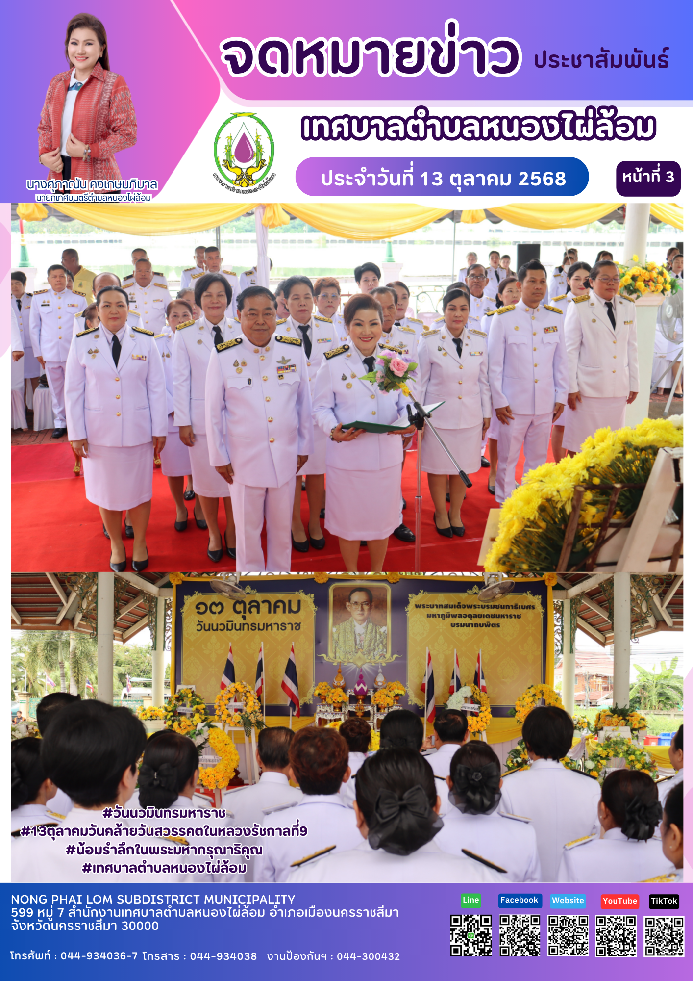 จดหมายข่าวเทศบาลตำบลหนองไผ่ล้อม ฉบับประจำวันที่ 13 ตุลาคม 2568