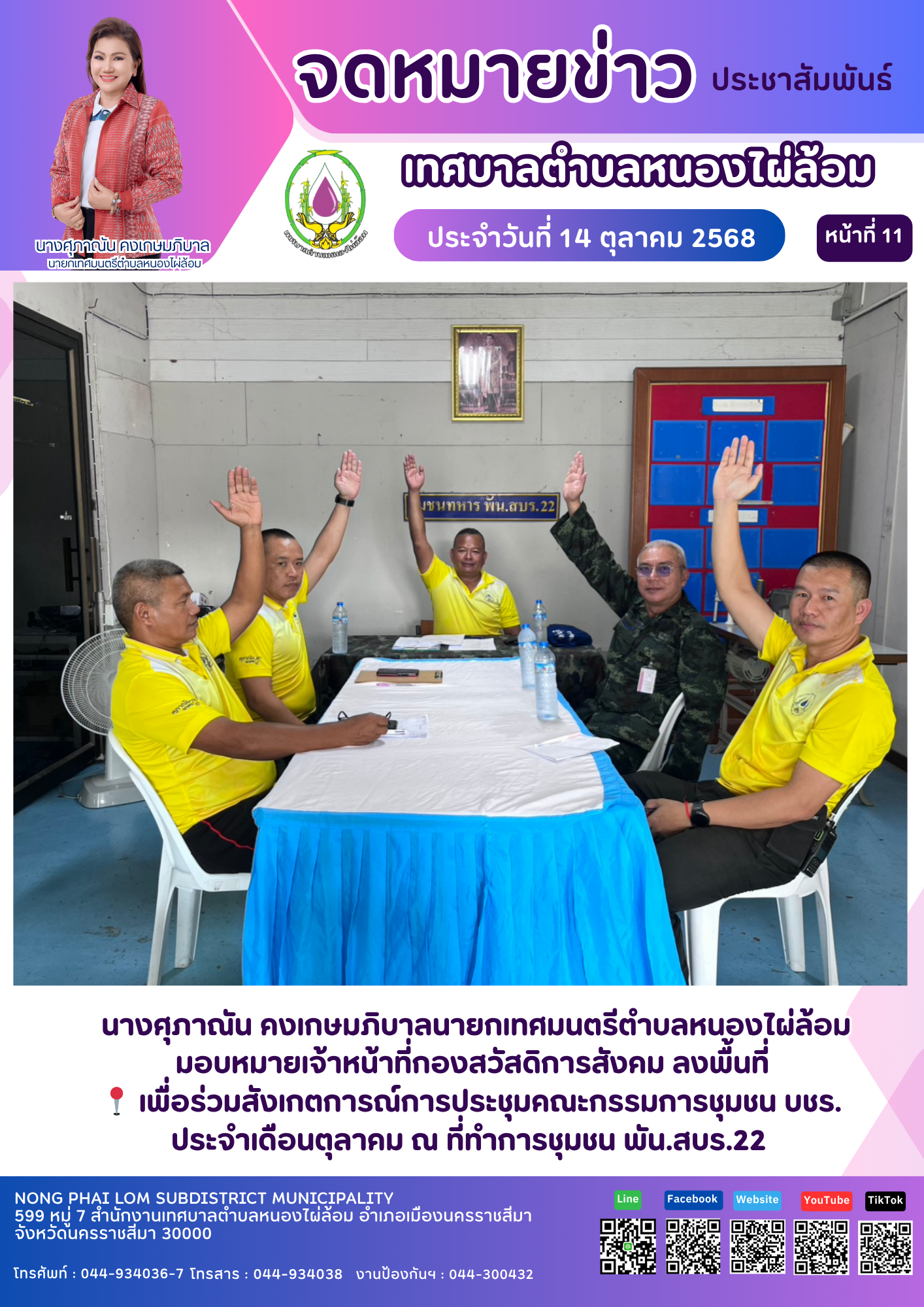 จดหมายข่าวเทศบาลตำบลหนองไผ่ล้อม ฉบับประจำวันที่ 14 ตุลาคม 2568