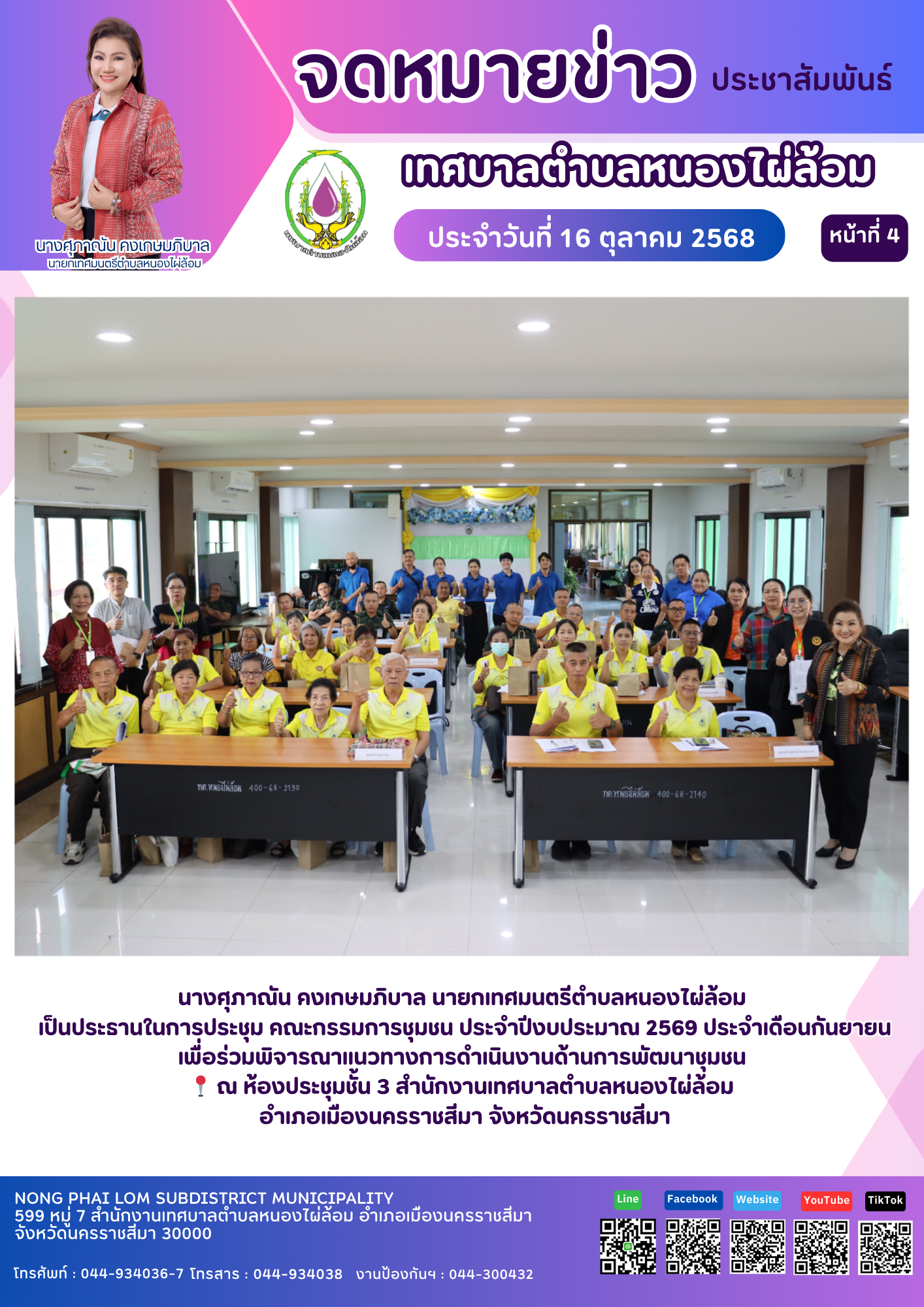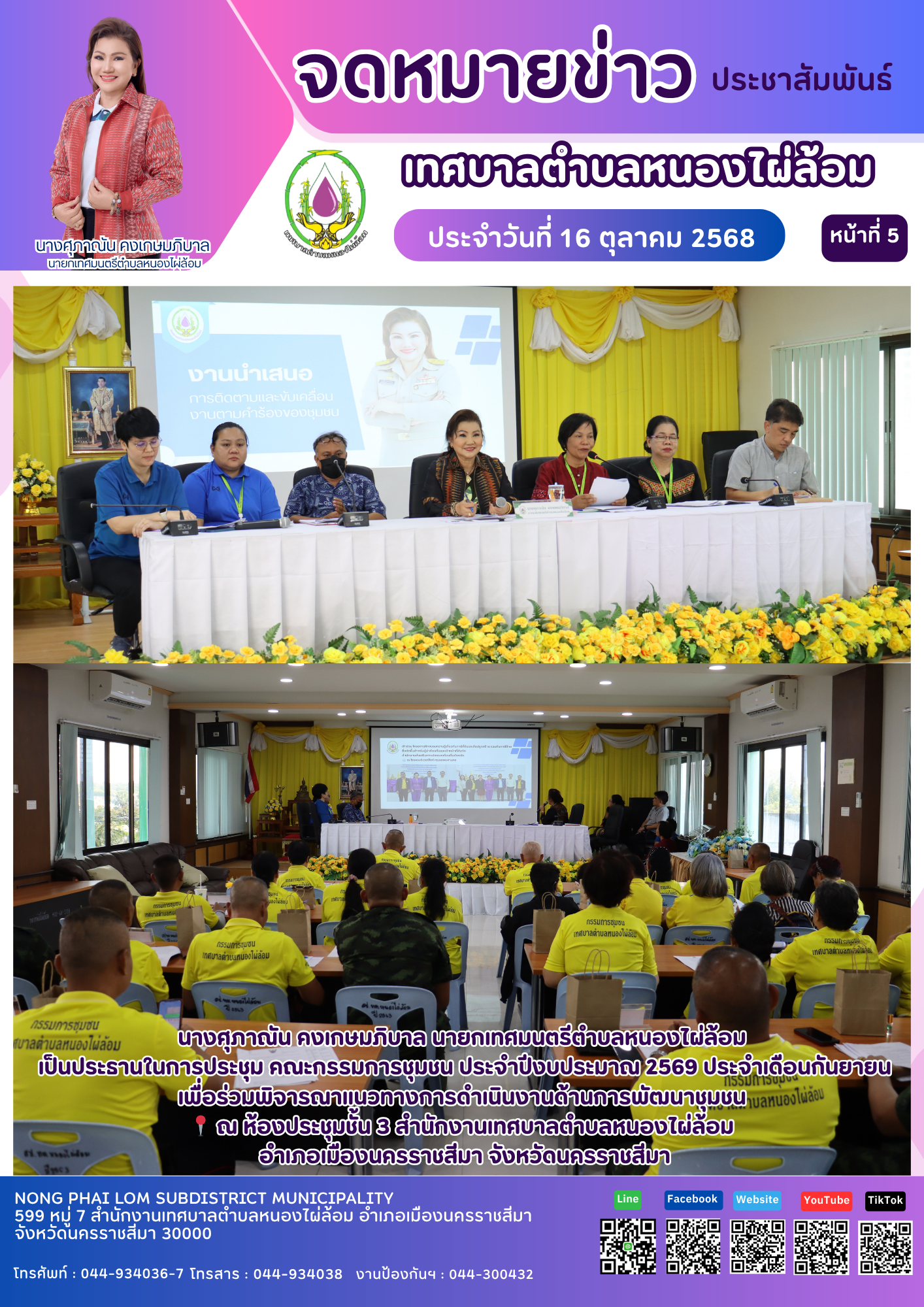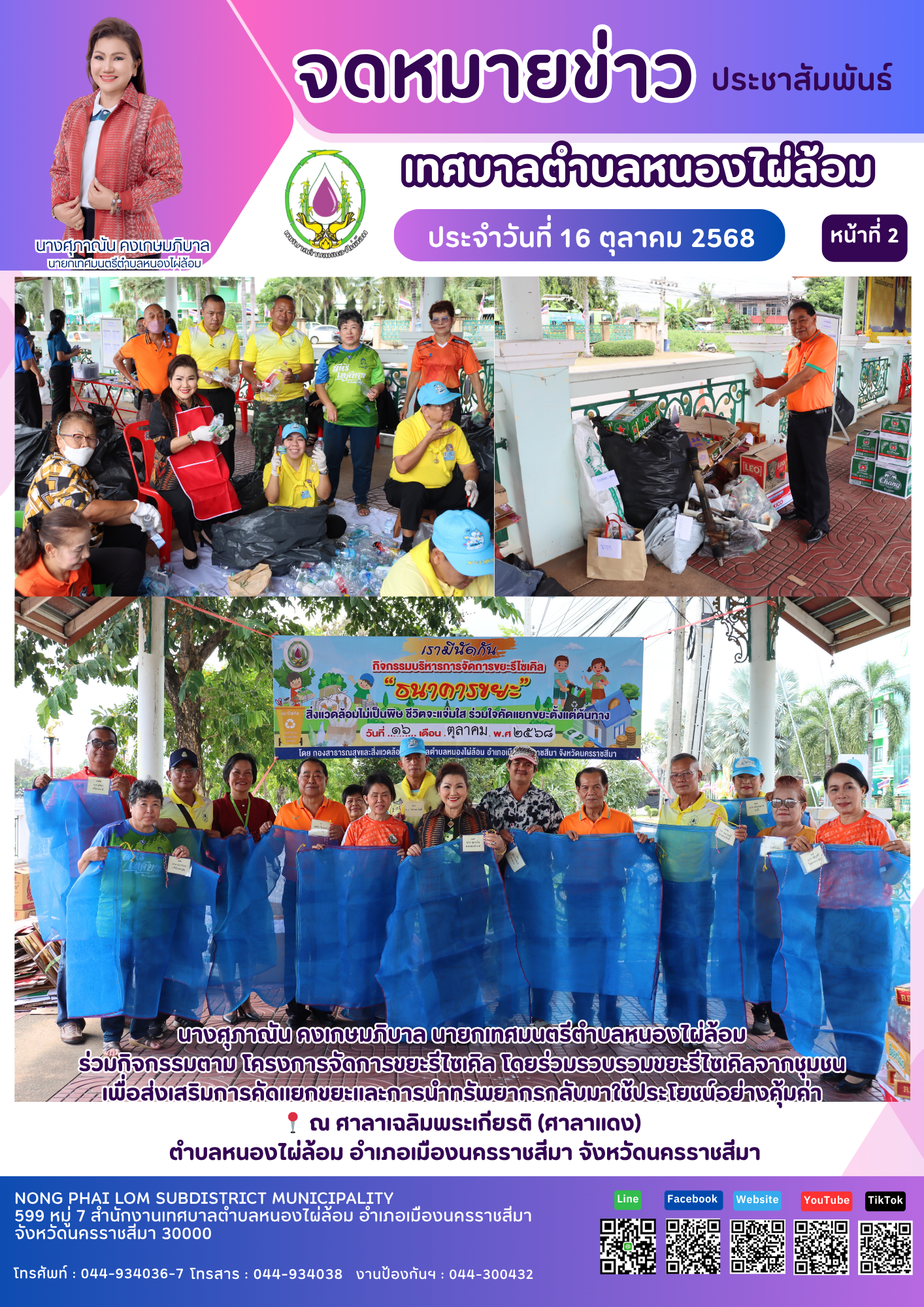 จดหมายข่าวเทศบาลตำบลหนองไผ่ล้อม ฉบับประจำวันที่ 16 ตุลาคม 2568