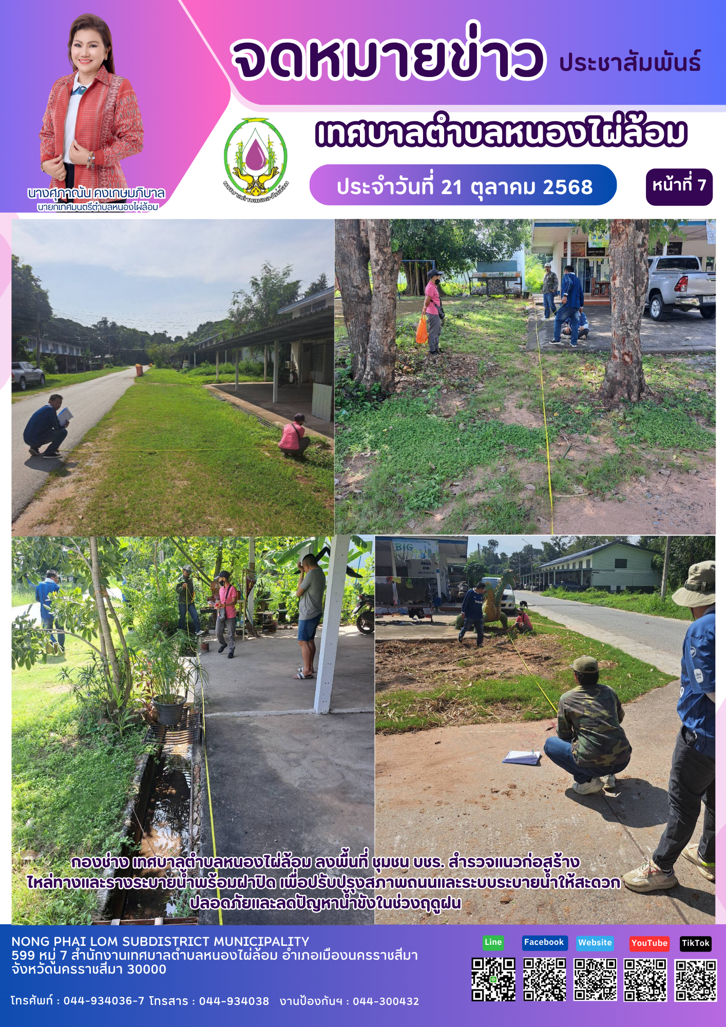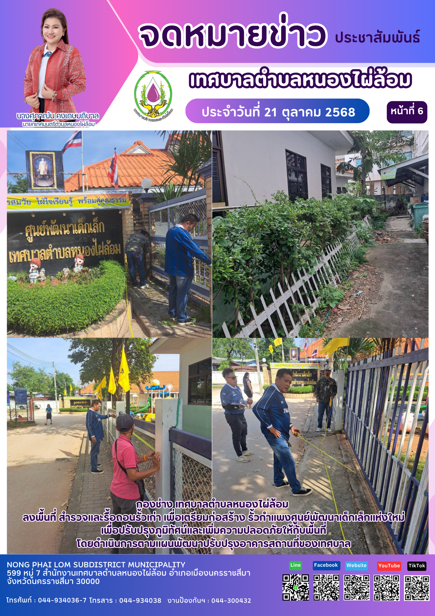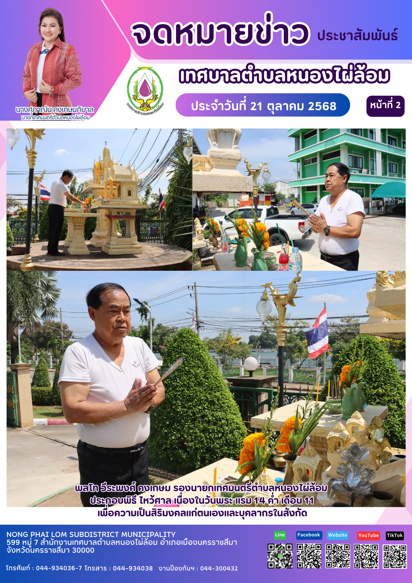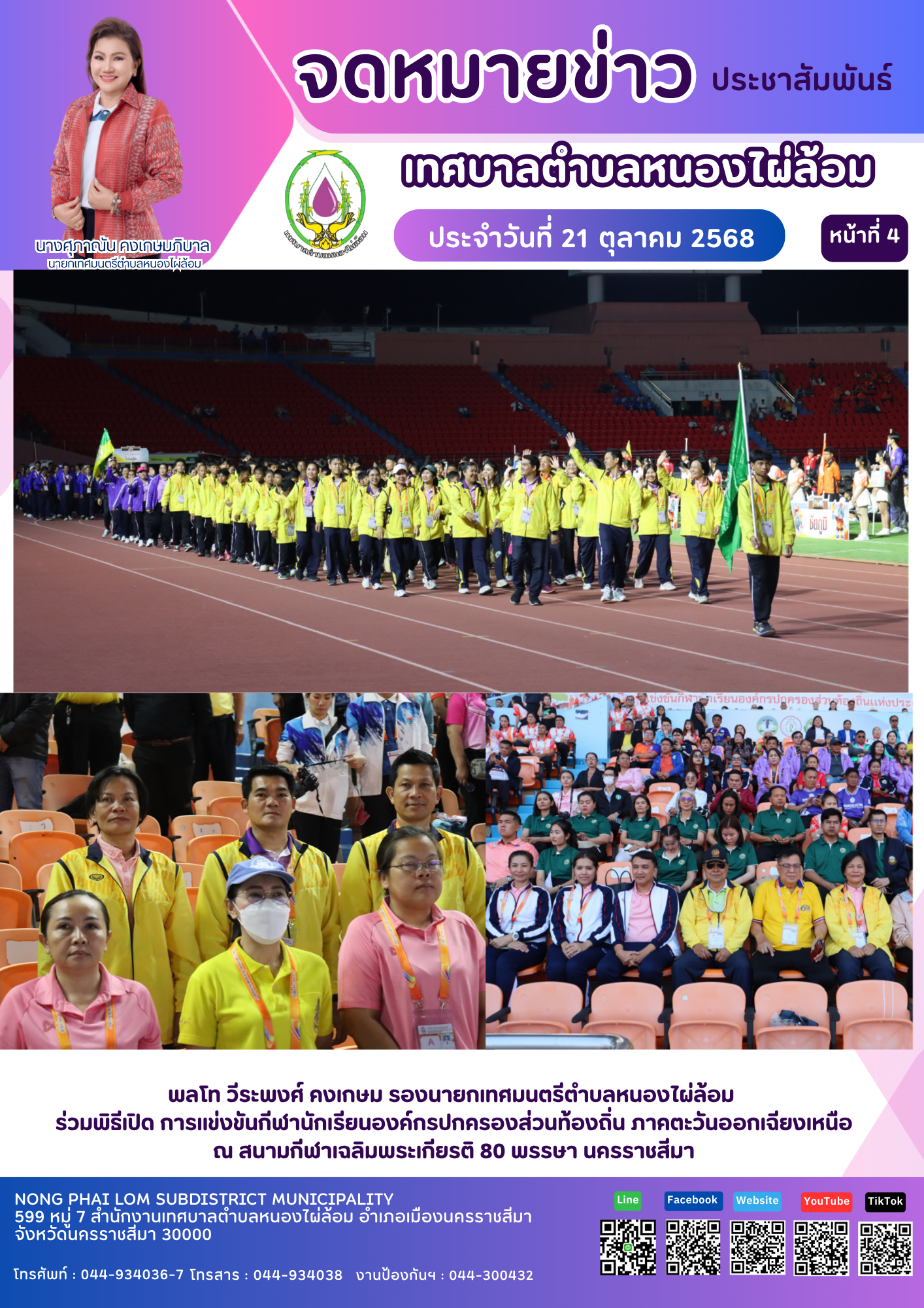 จดหมายข่าวเทศบาลตำบลหนองไผ่ล้อม ฉบับประจำวันที่ 21 ตุลาคม 2568