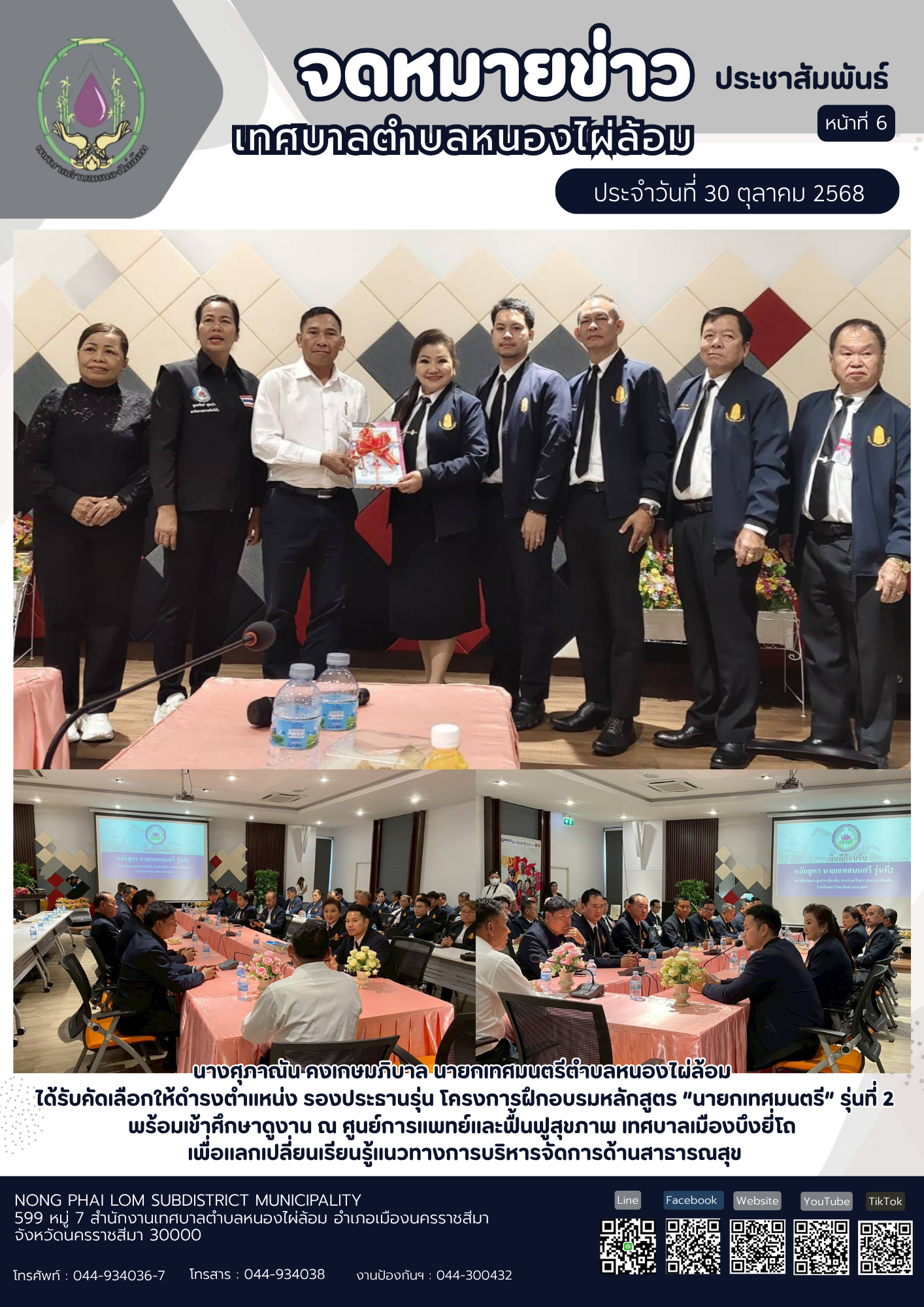 จดหมายข่าวเทศบาลตำบลหนองไผ่ล้อม ฉบับประจำวันที่ 30 ตุลาคม 2568