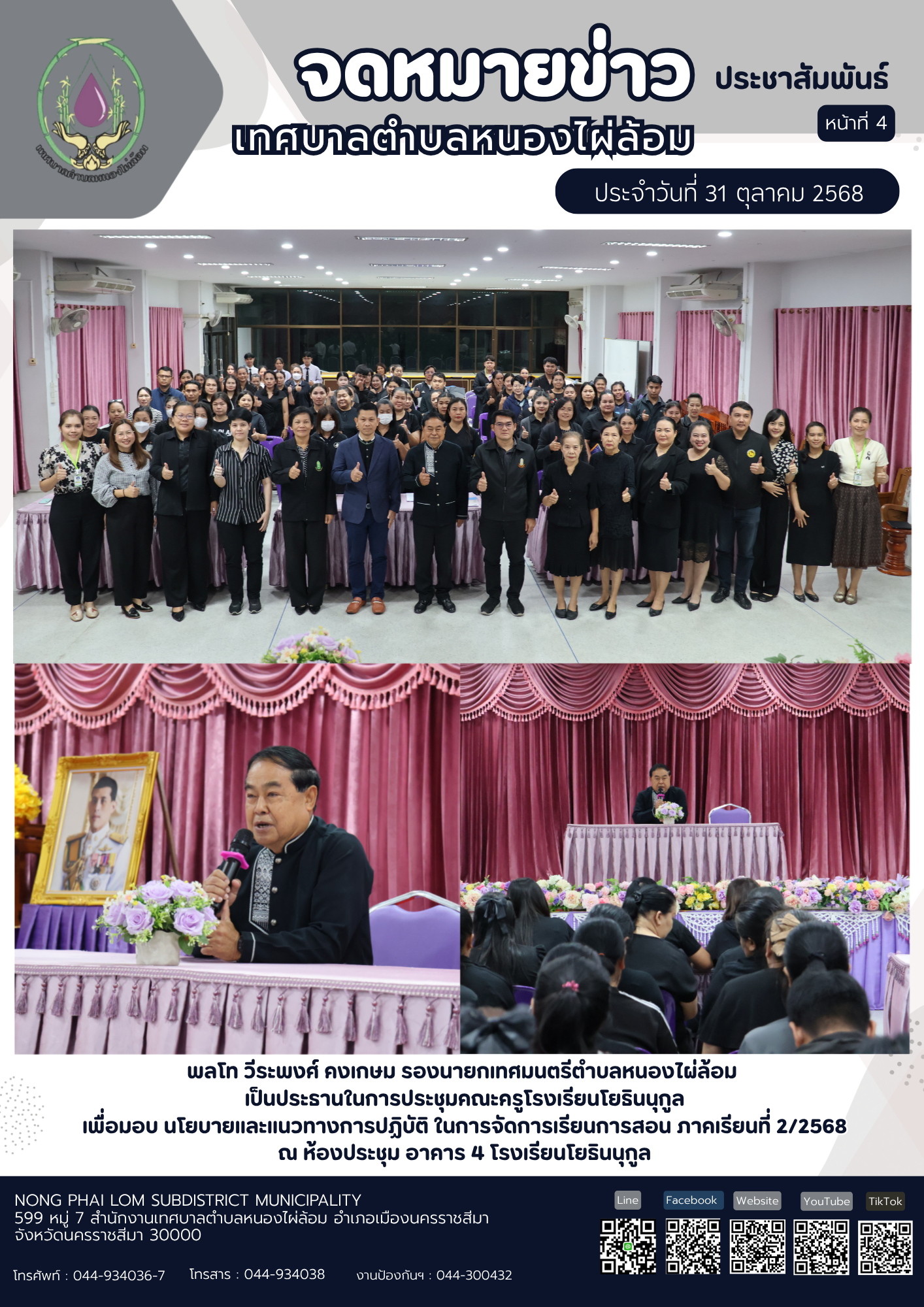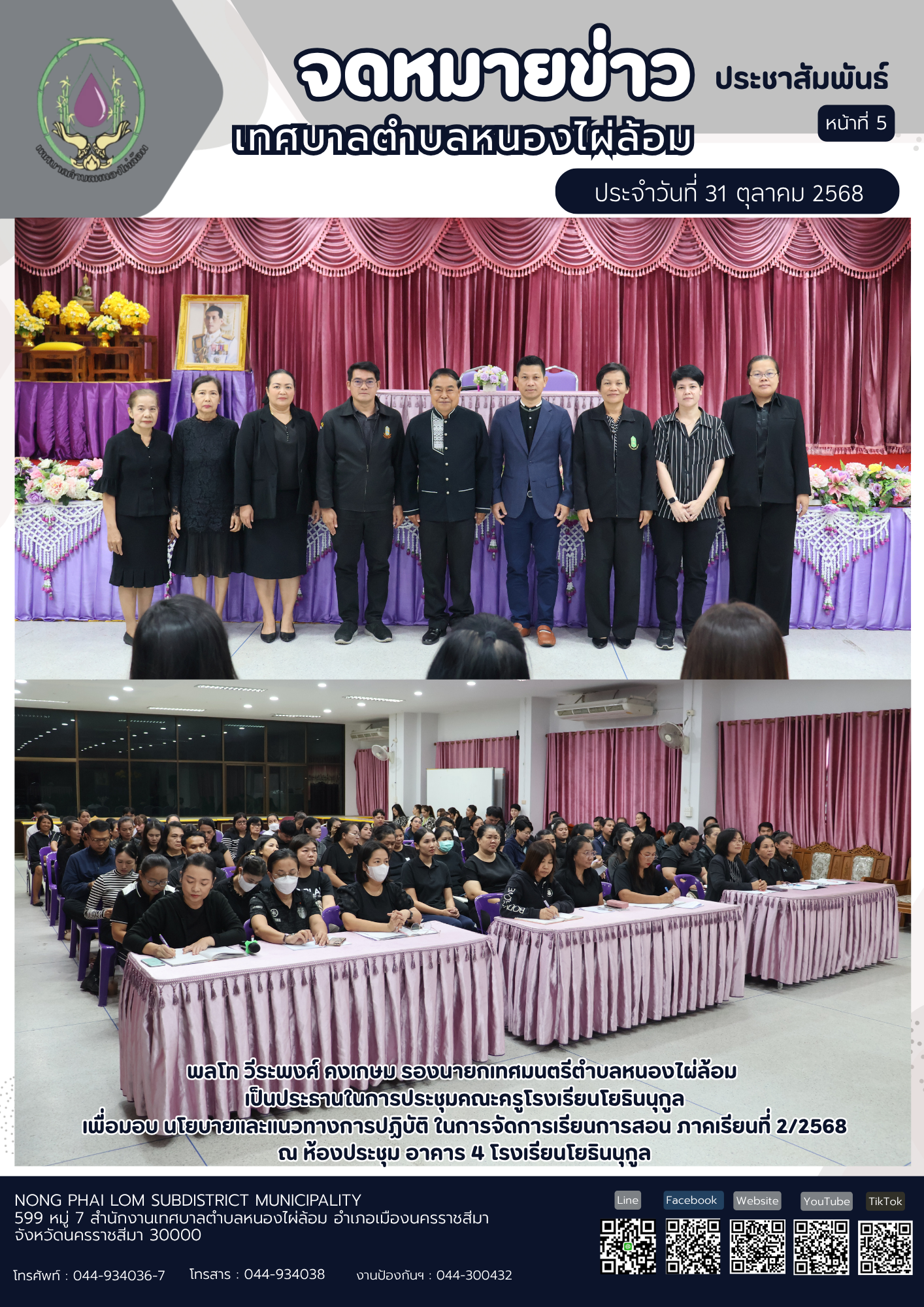 จดหมายข่าวเทศบาลตำบลหนองไผ่ล้อม ฉบับประจำวันที่ 31 ตุลาคม 2568
