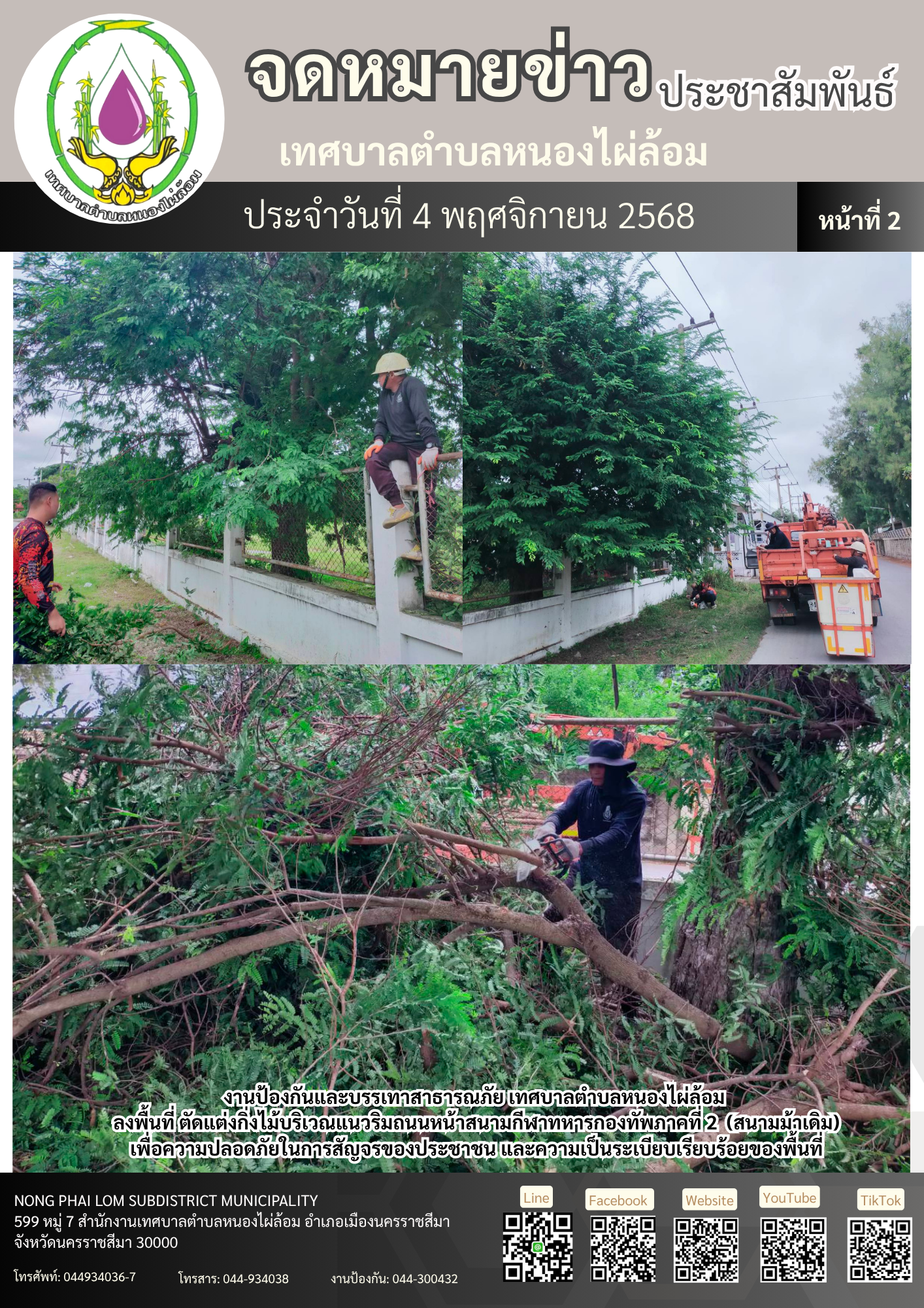 จดหมายข่าวเทศบาลตำบลหนองไผ่ล้อม ฉบับประจำวันที่ 4 พฤศจิกายน 2568