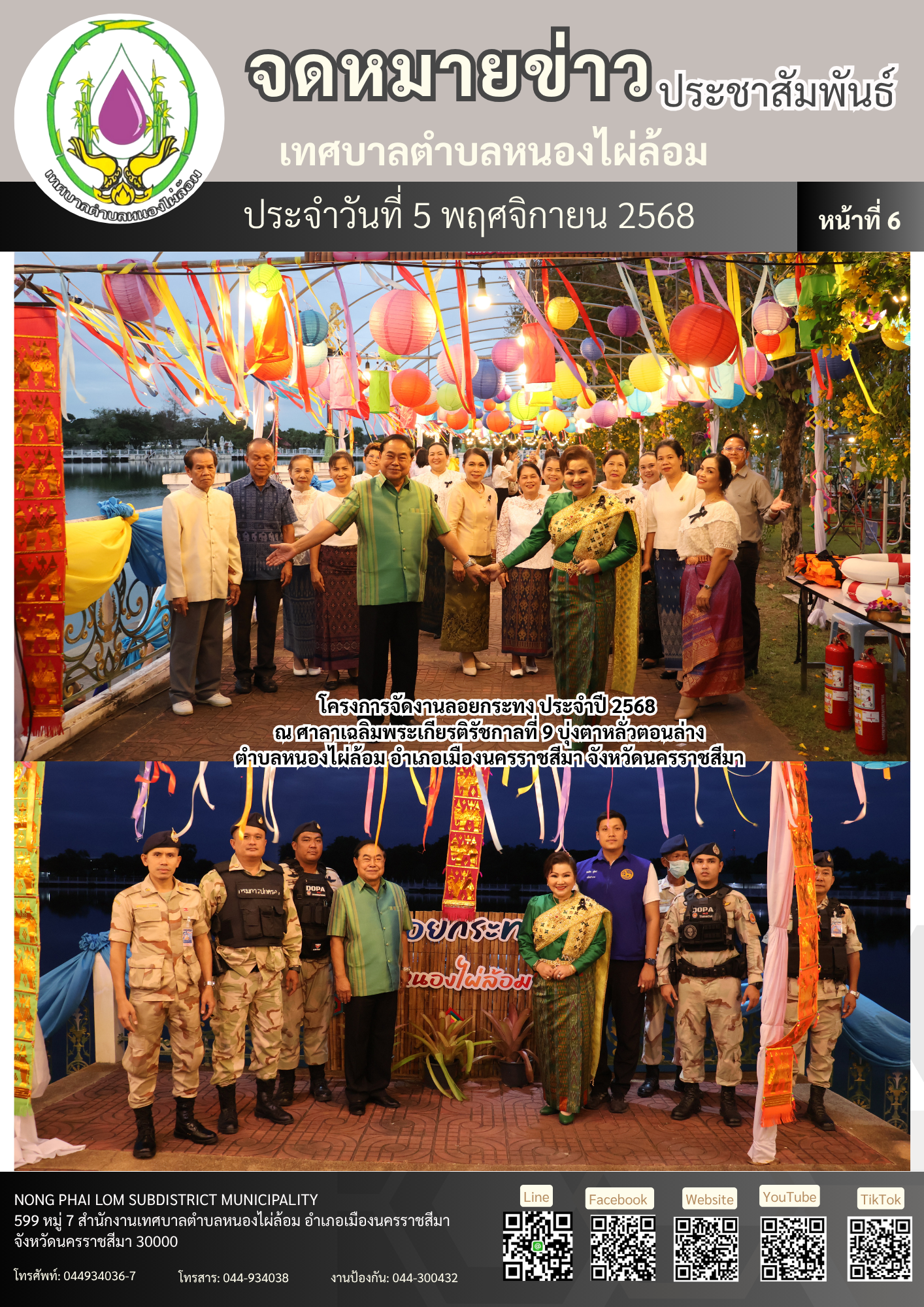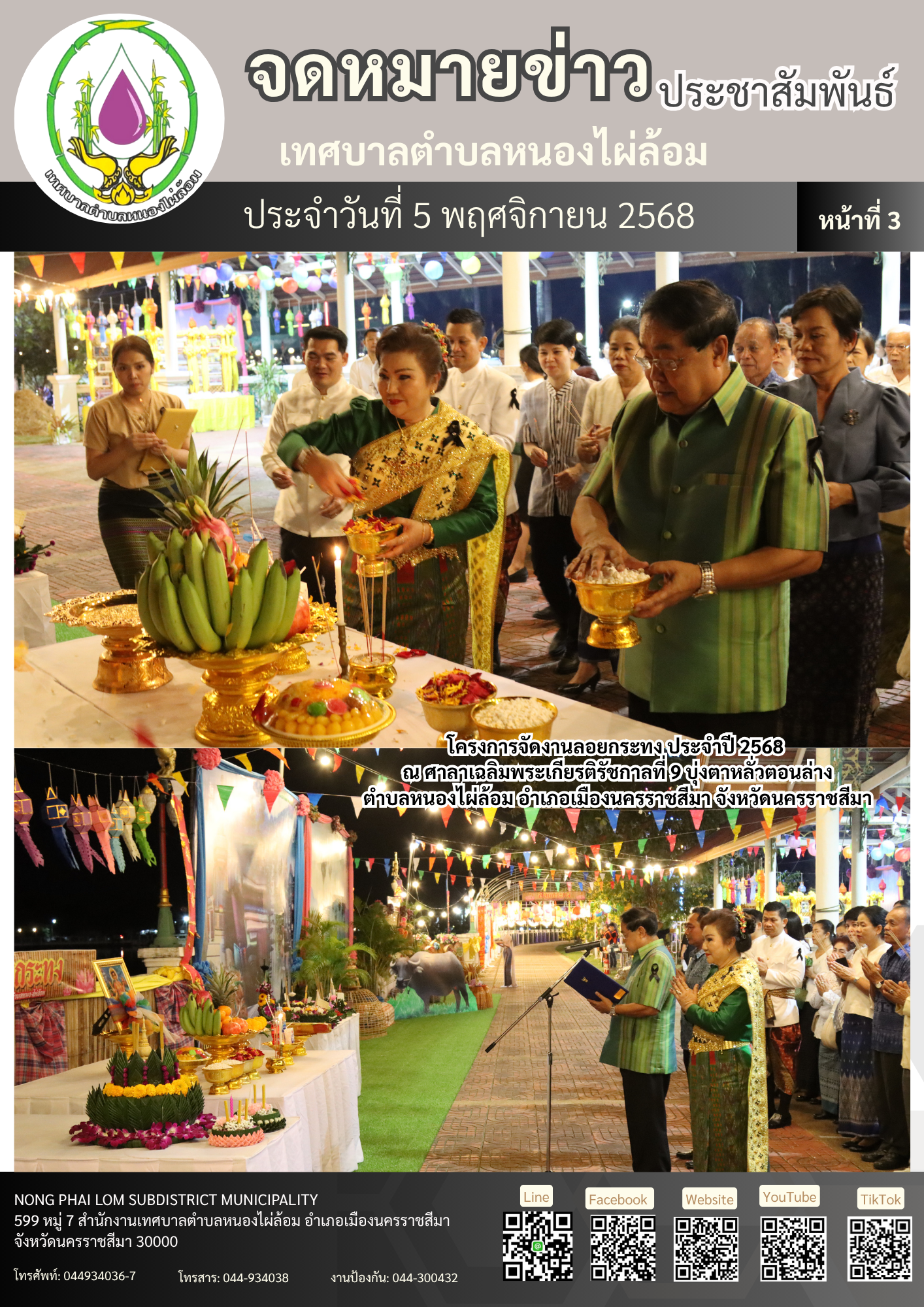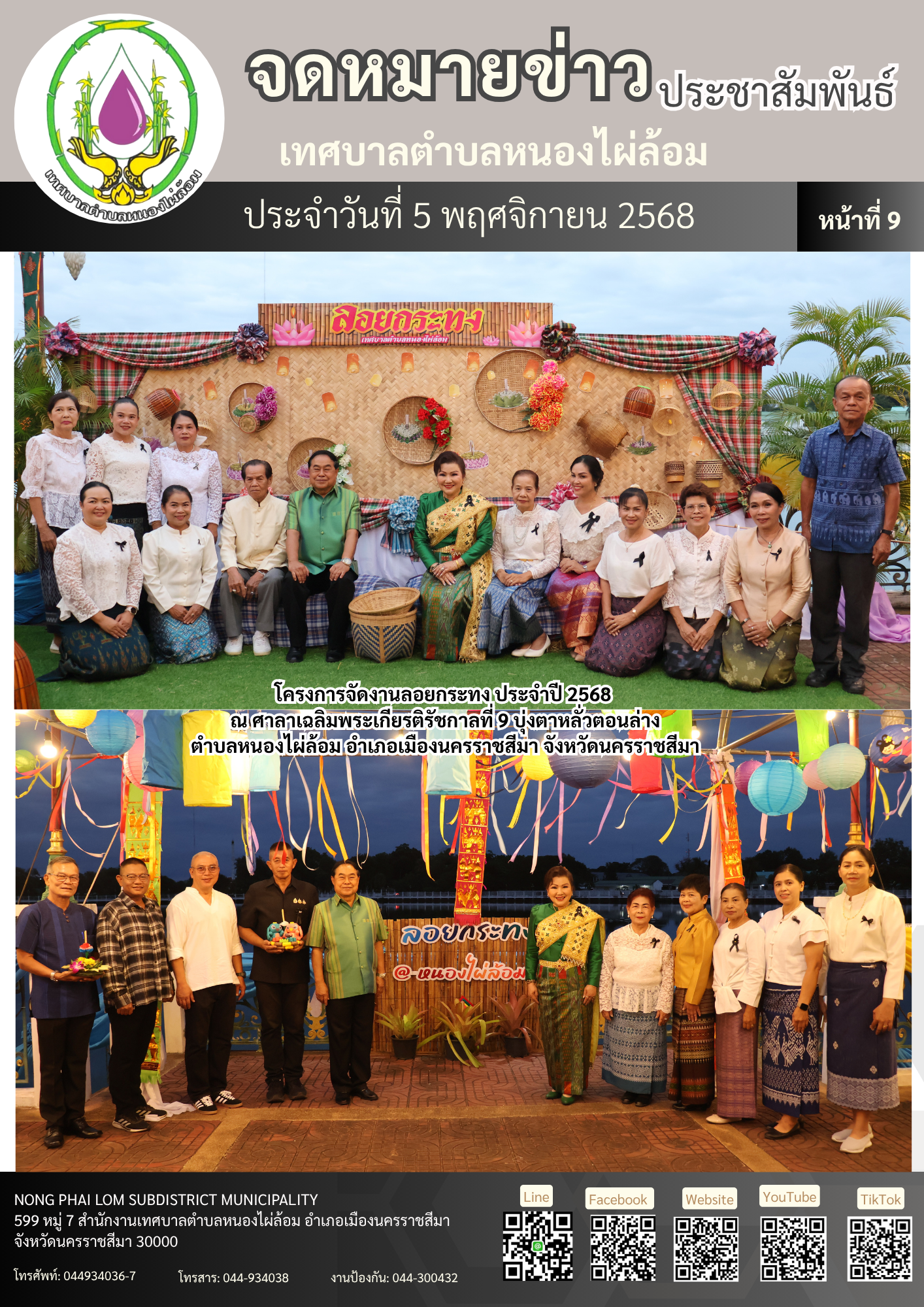 จดหมายข่าวเทศบาลตำบลหนองไผ่ล้อม ฉบับประจำวันที่ 5 พฤศจิกายน 2568