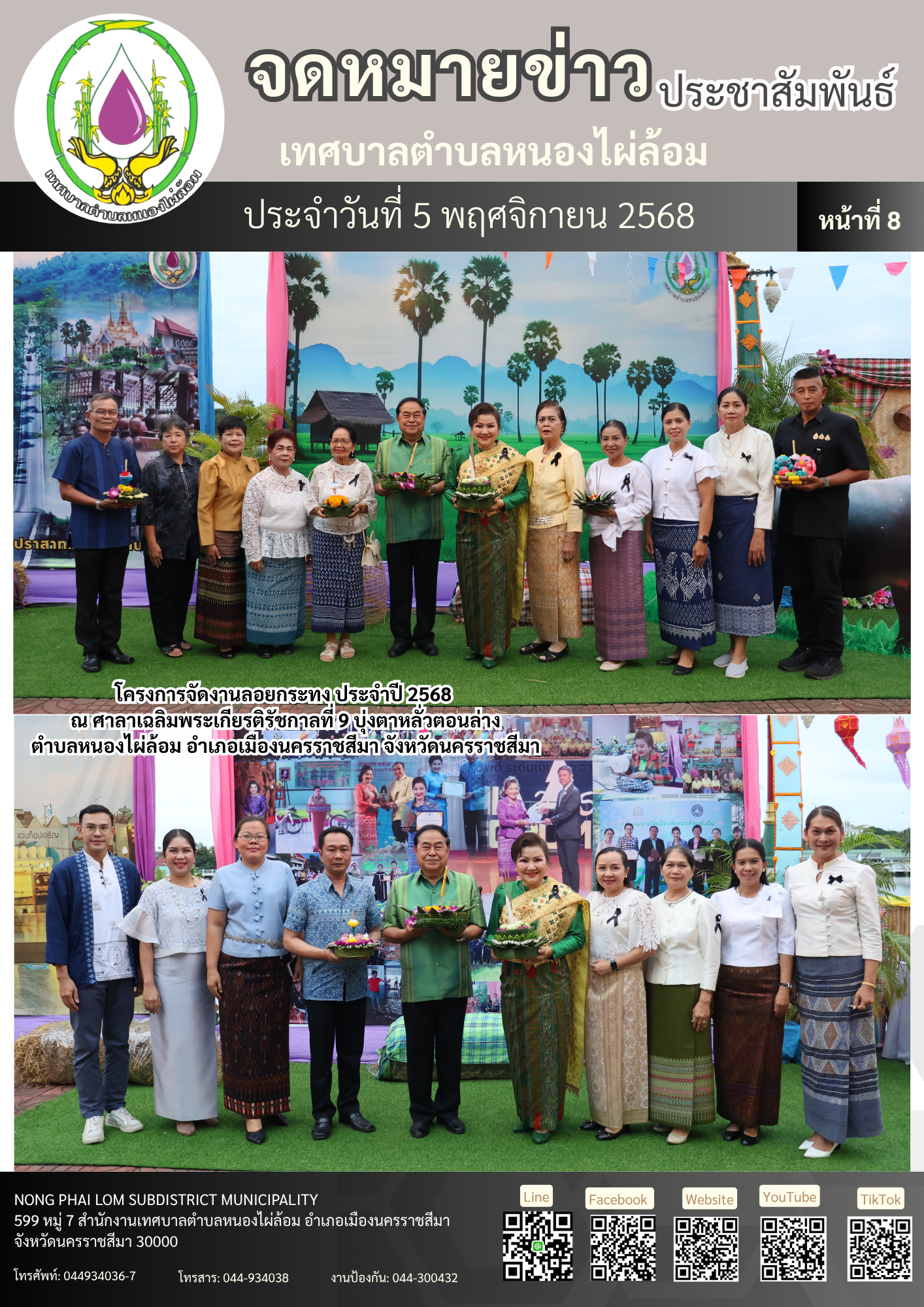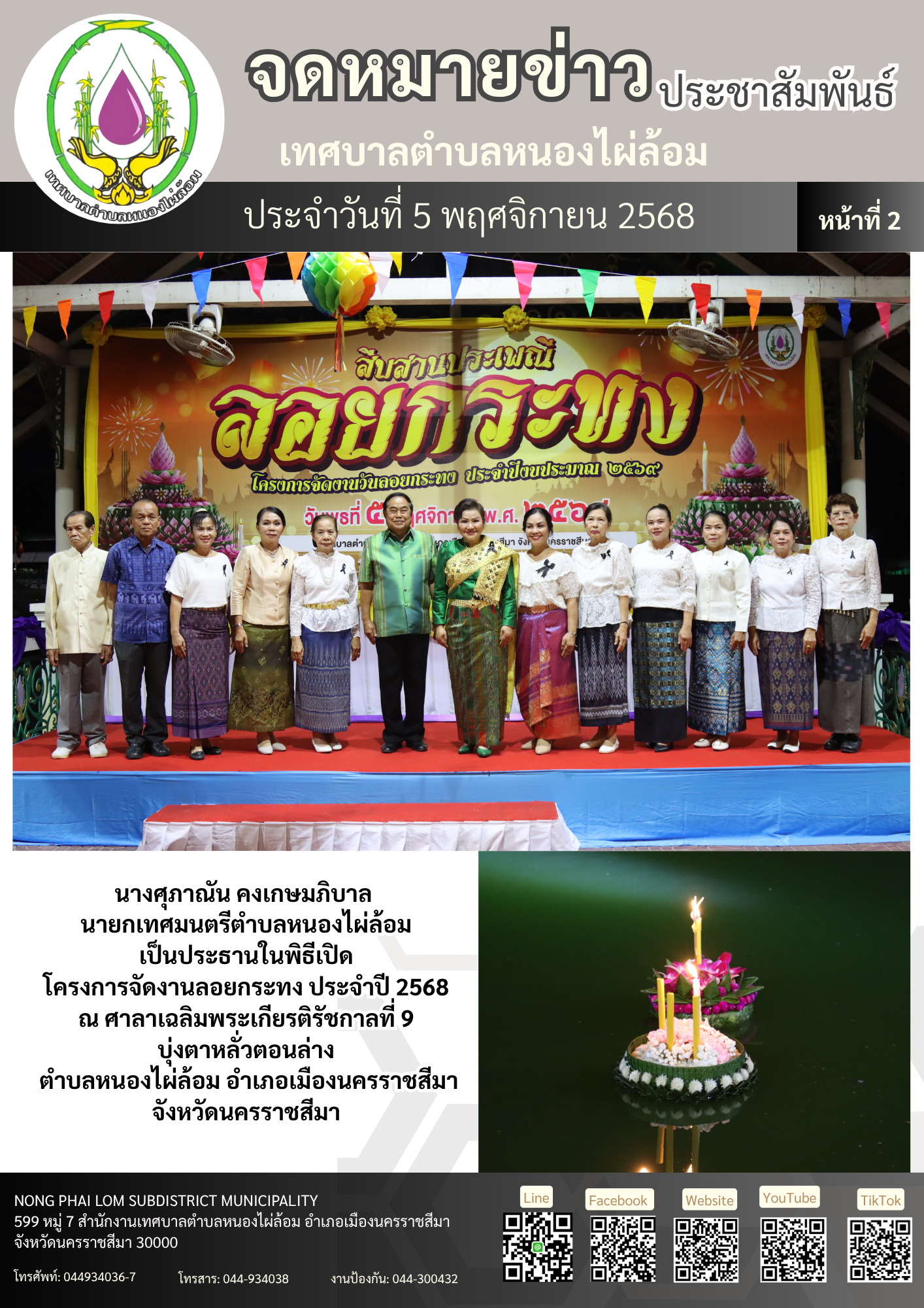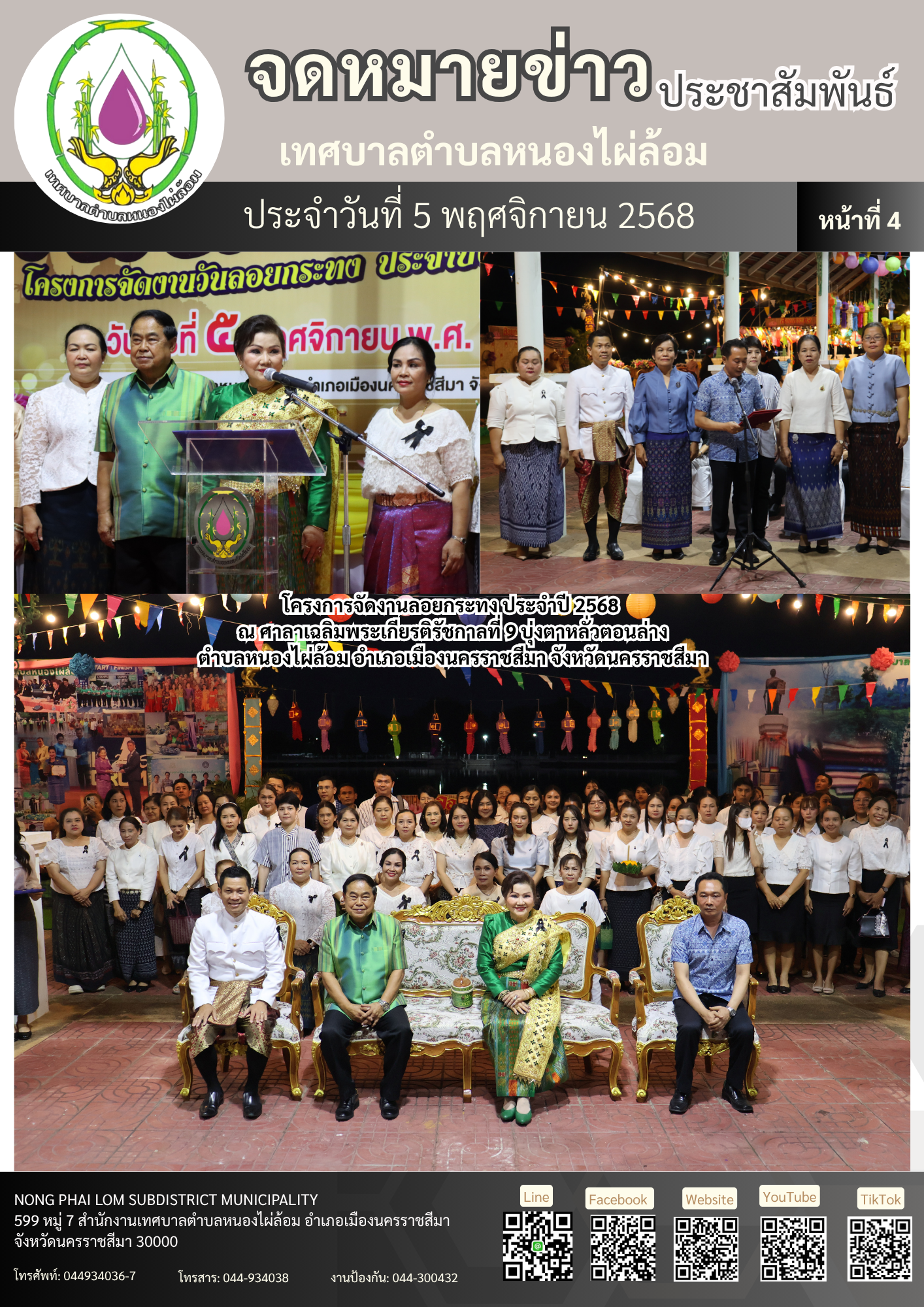 จดหมายข่าวเทศบาลตำบลหนองไผ่ล้อม ฉบับประจำวันที่ 5 พฤศจิกายน 2568