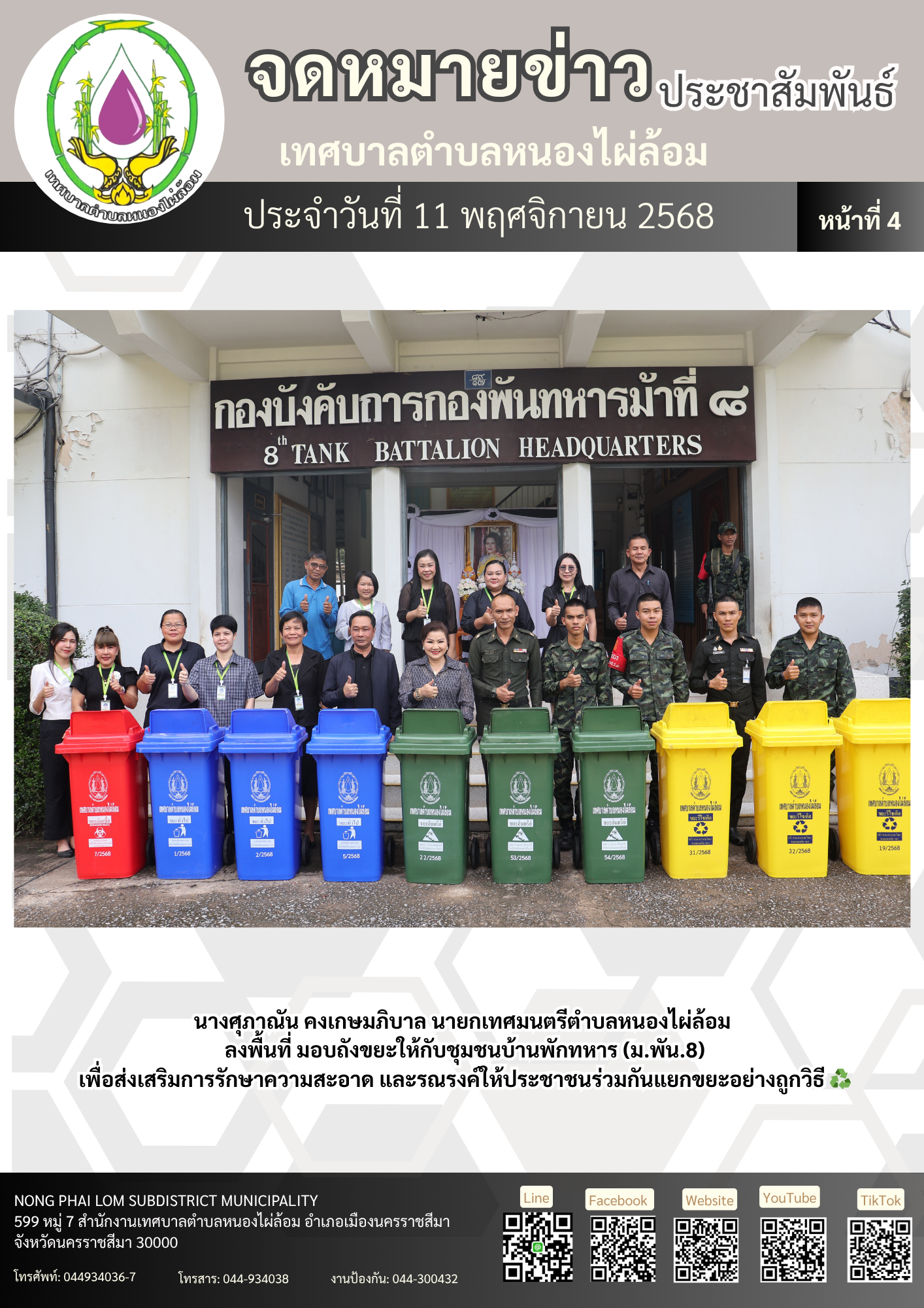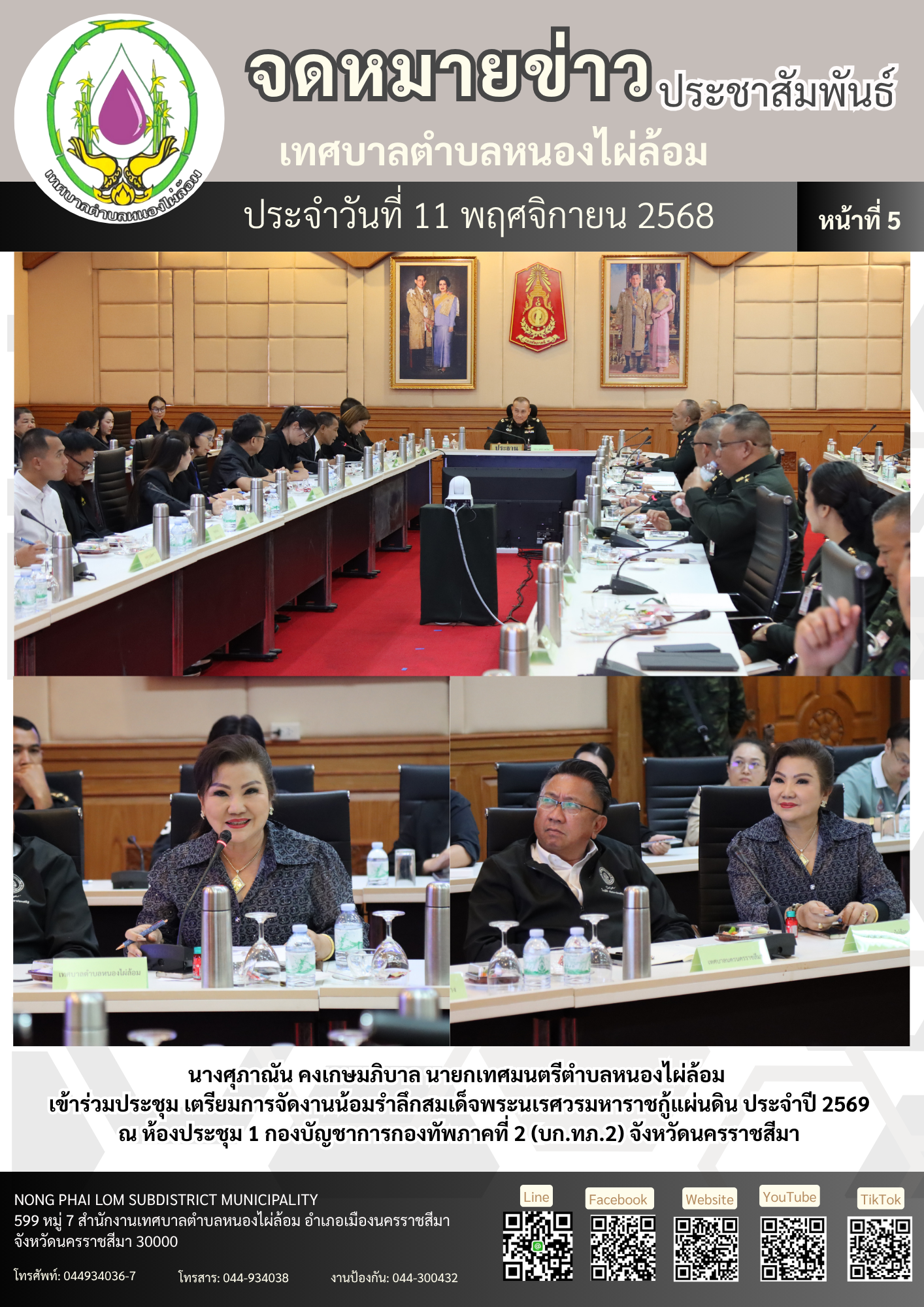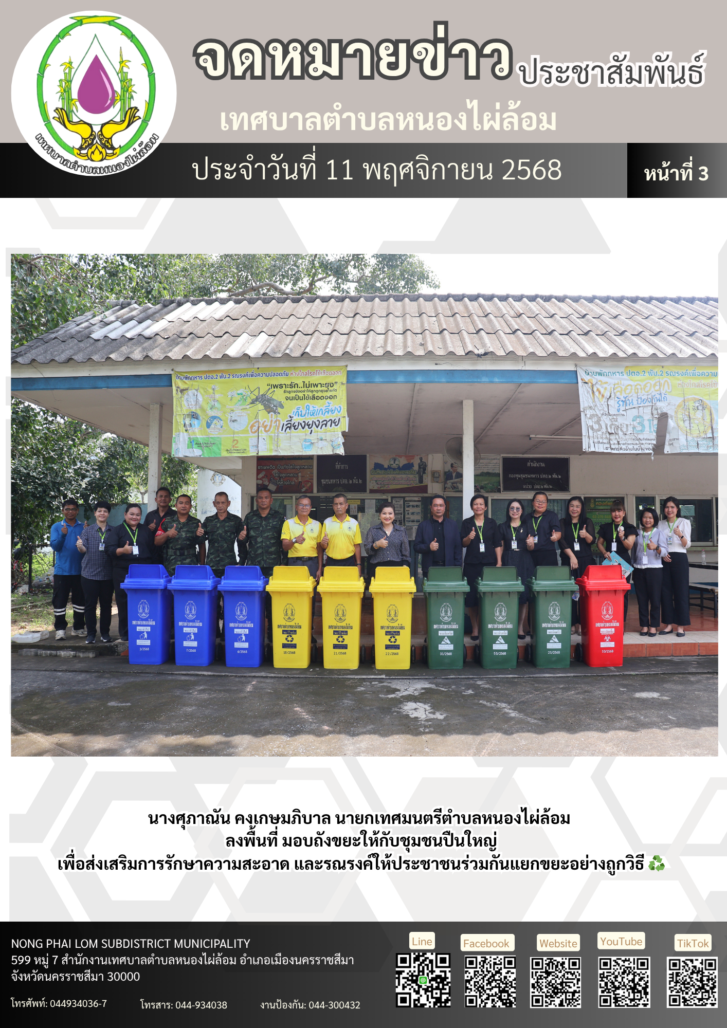 จดหมายข่าวเทศบาลตำบลหนองไผ่ล้อม ฉบับประจำวันที่ 11 พฤศจิกายน 2568