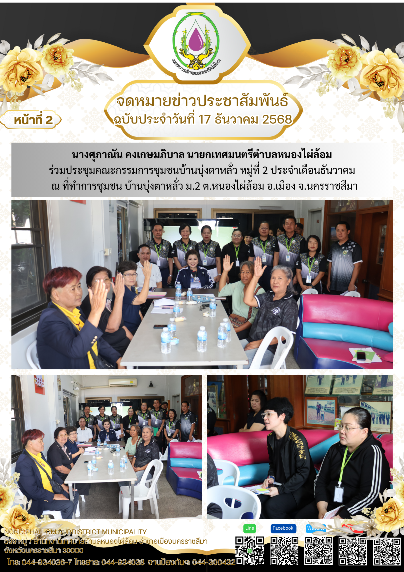 จดหมายข่าวเทศบาลตำบลหนองไผ่ล้อม ฉบับประจำวันที่ 17 ธันวาคม 2568
