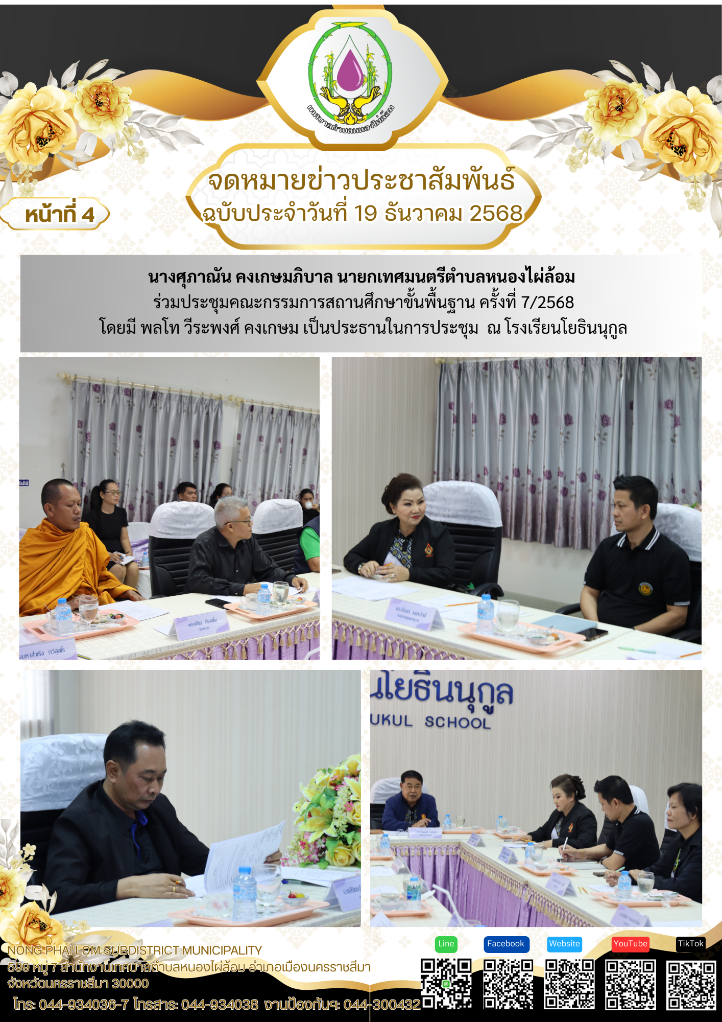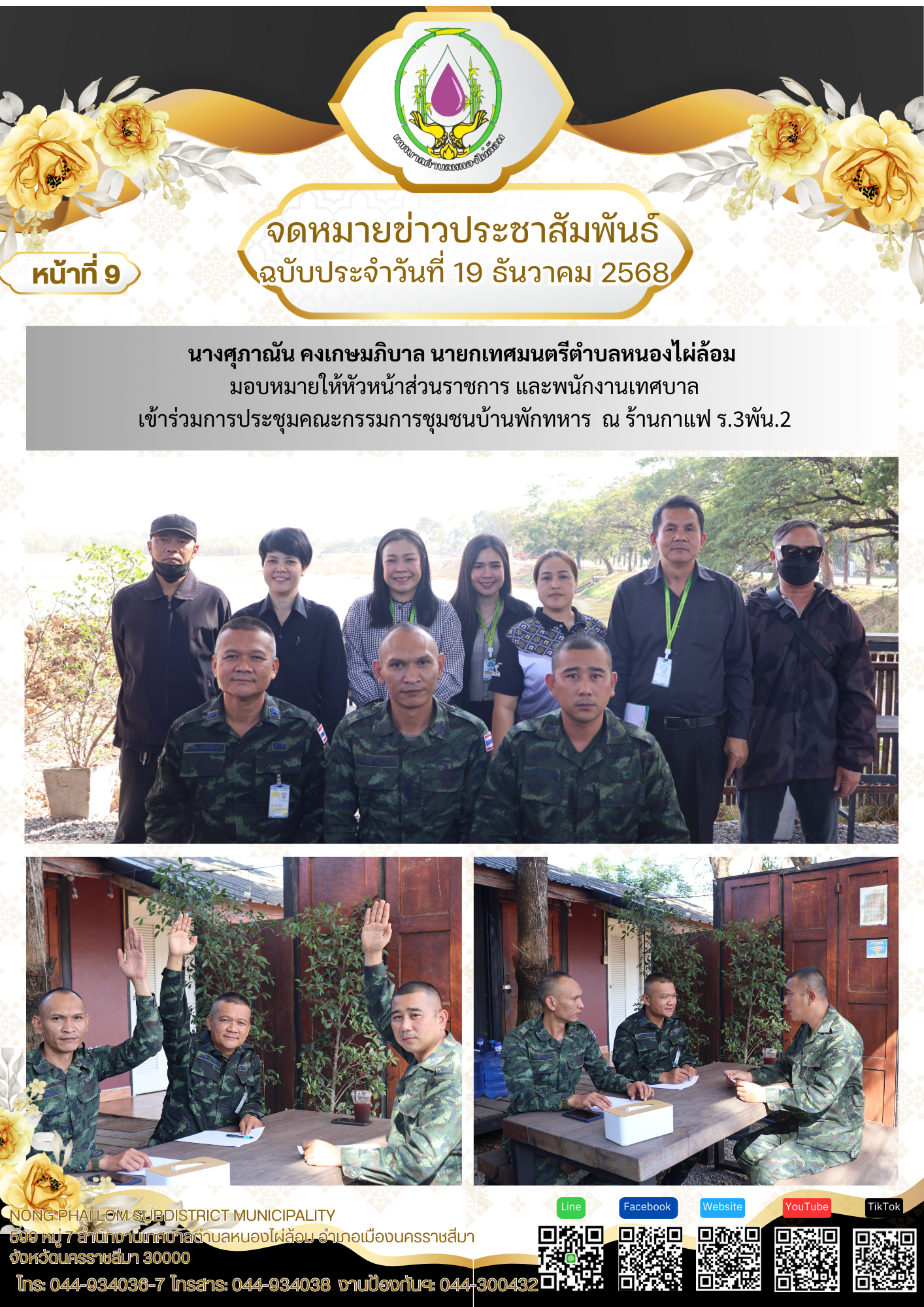 จดหมายข่าวเทศบาลตำบลหนองไผ่ล้อม ฉบับประจำวันที่ 19 ธันวาคม 2568