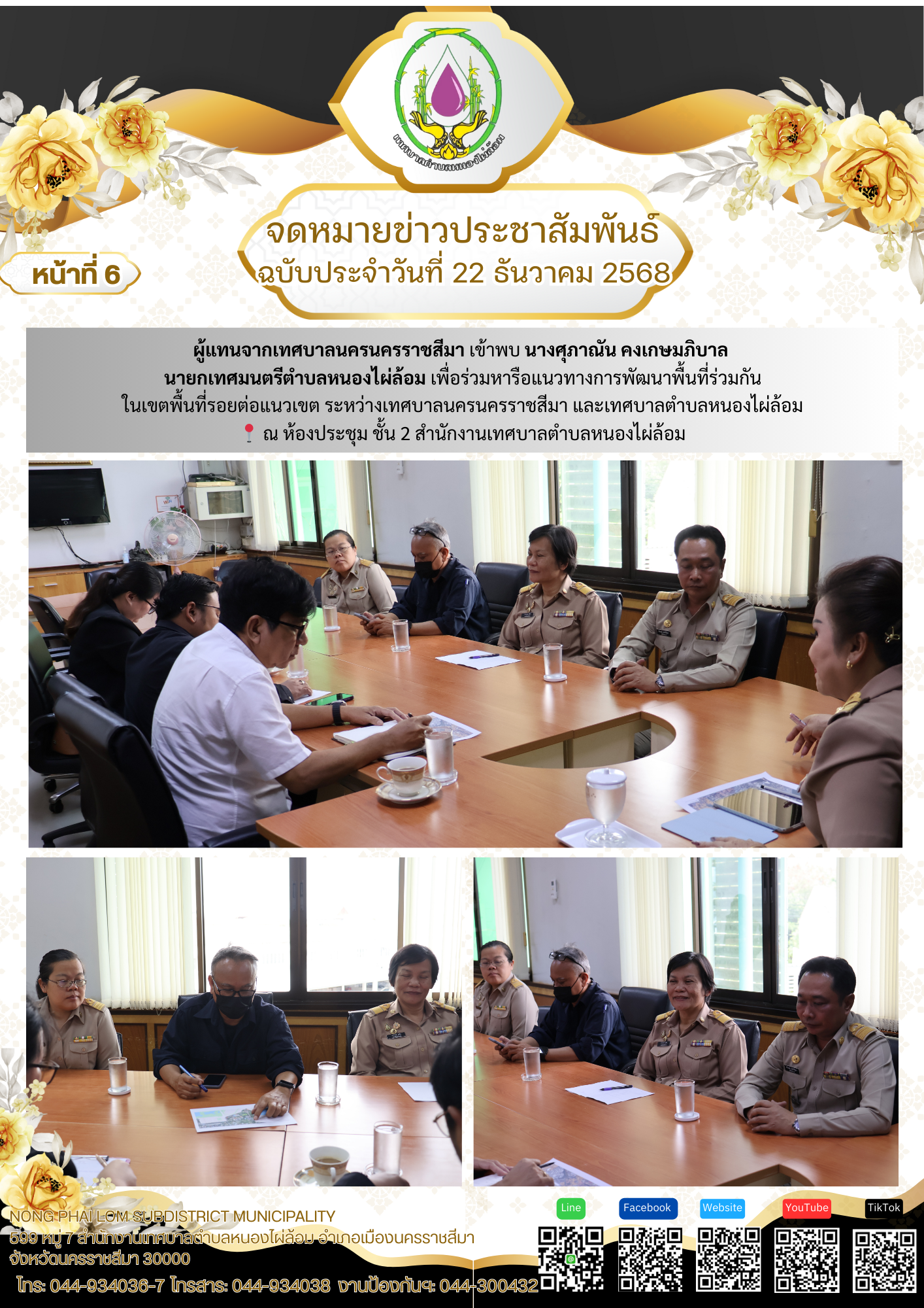 จดหมายข่าวเทศบาลตำบลหนองไผ่ล้อม ฉบับประจำวันที่ 22 ธันวาคม 2568