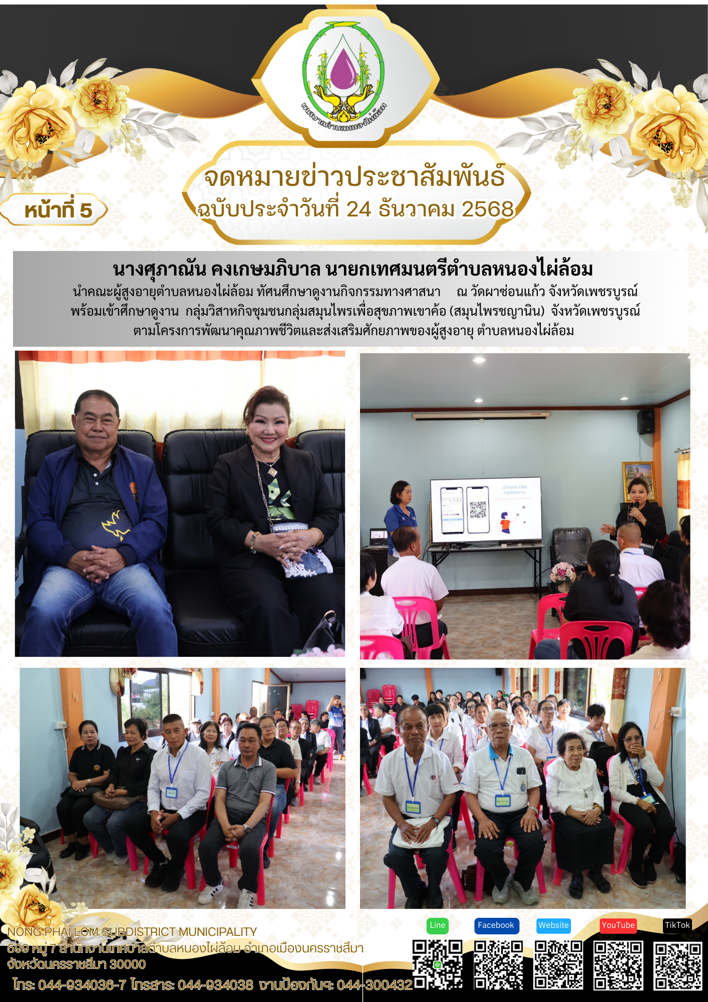 จดหมายข่าวเทศบาลตำบลหนองไผ่ล้อม ฉบับประจำวันที่ 24 ธันวาคม 2568