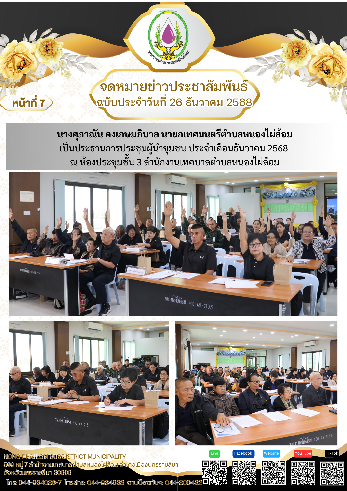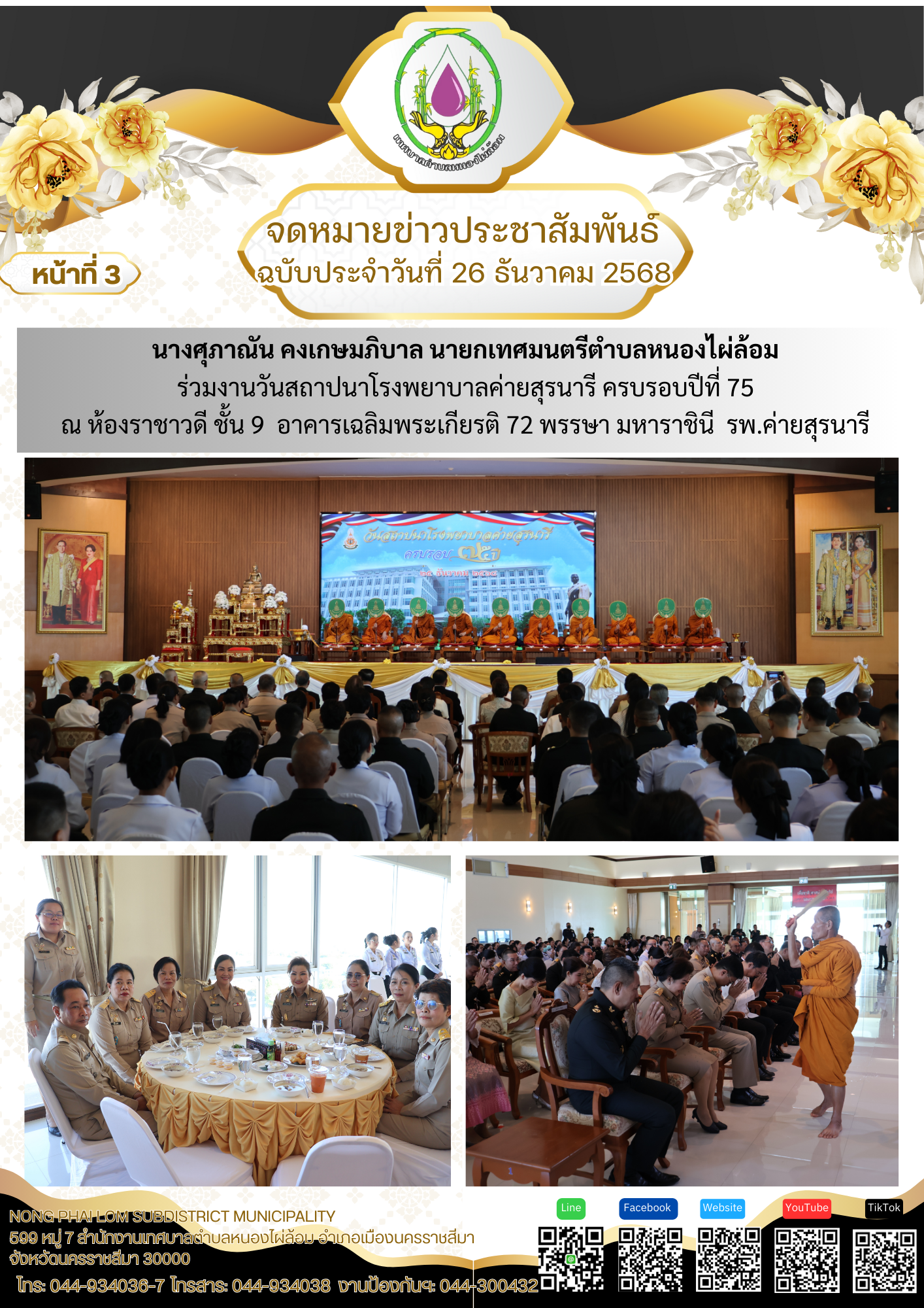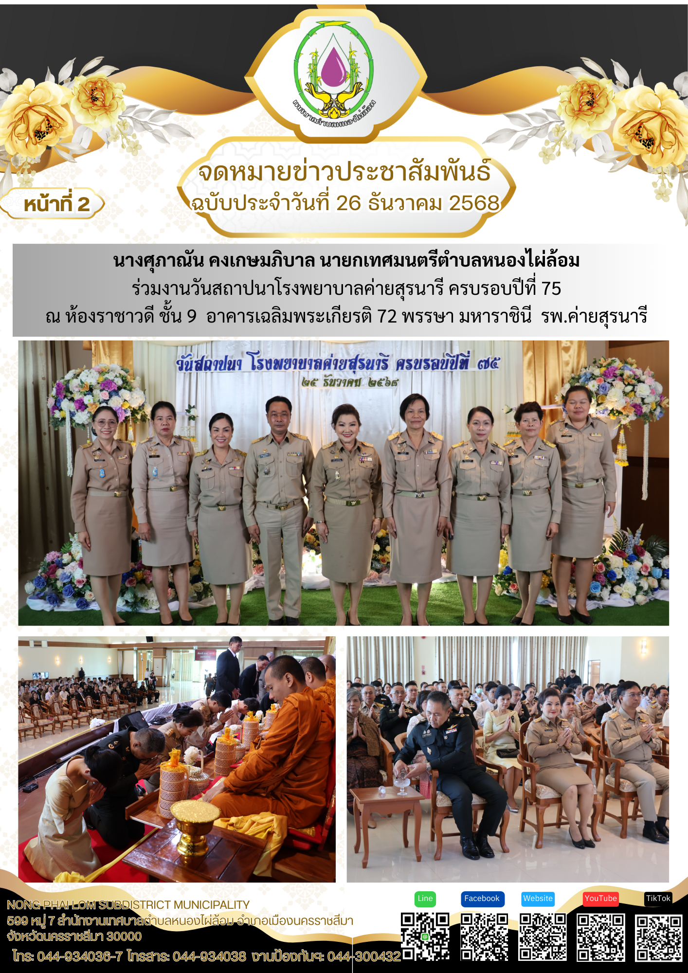 จดหมายข่าวเทศบาลตำบลหนองไผ่ล้อม ฉบับประจำวันที่ 26 ธันวาคม 2568