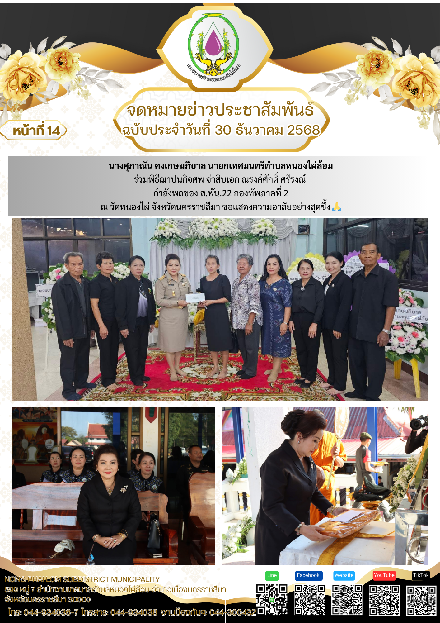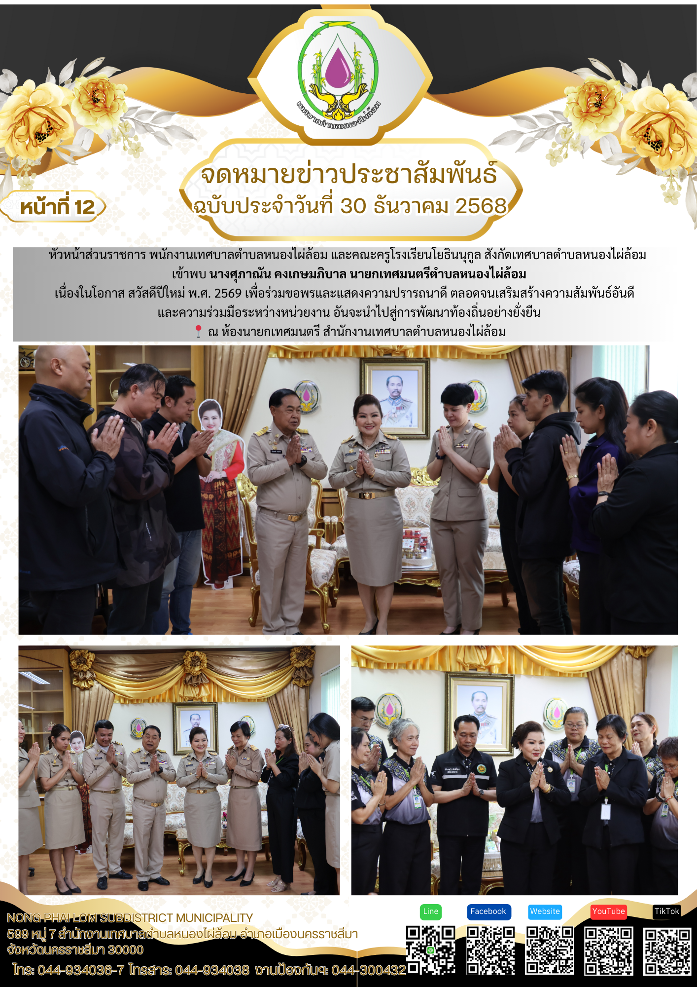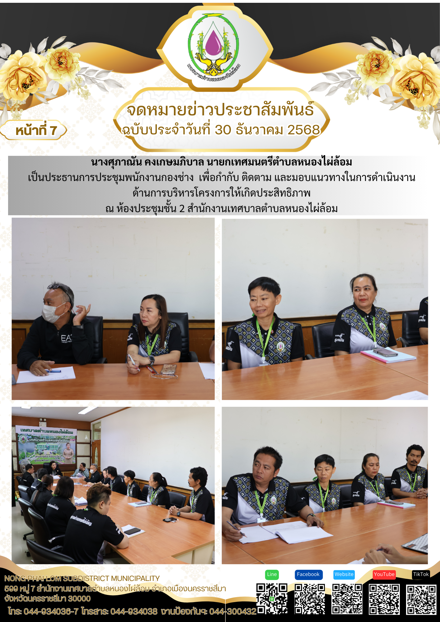 จดหมายข่าวเทศบาลตำบลหนองไผ่ล้อม ฉบับประจำวันที่ 30 ธันวาคม 2568