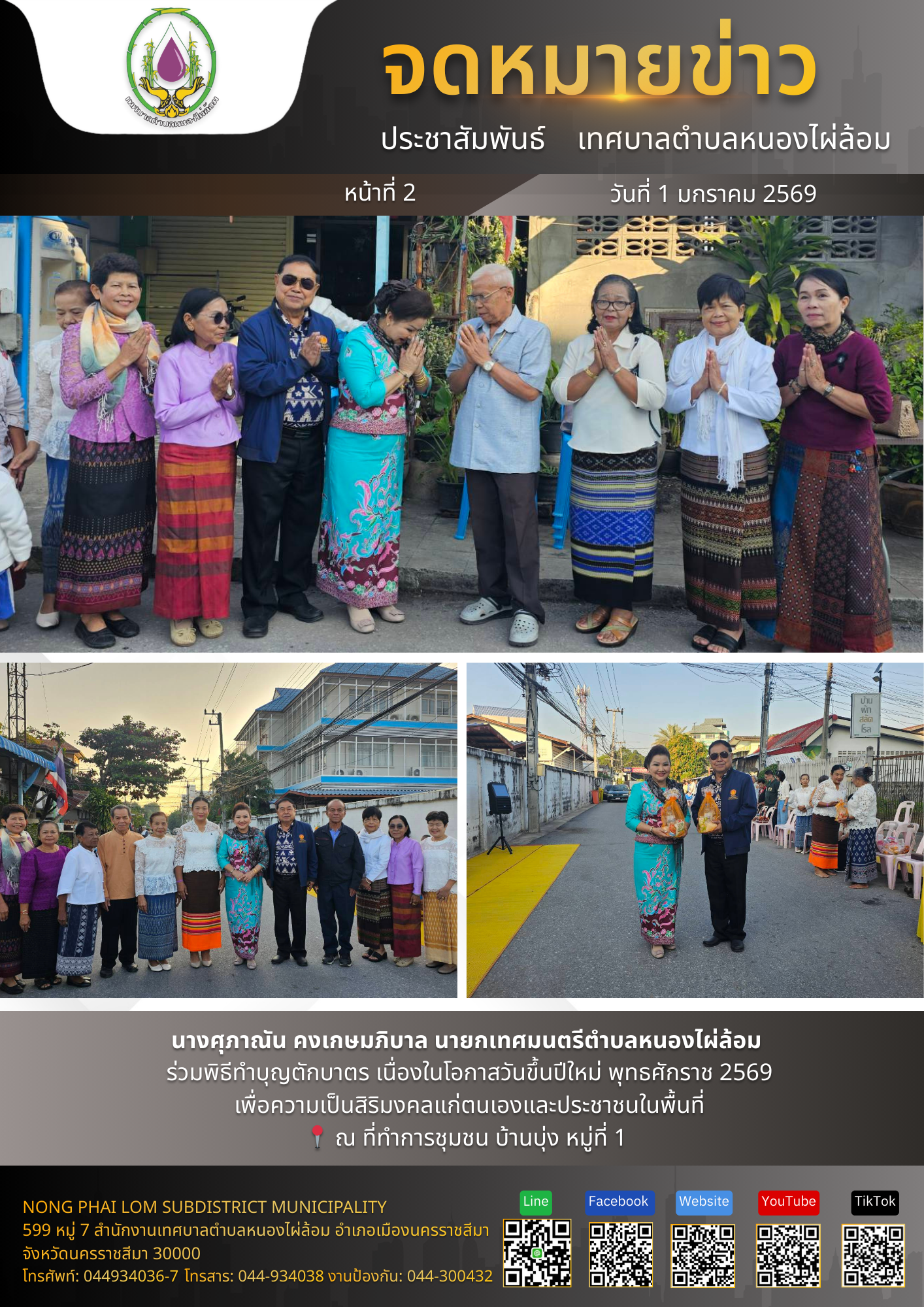 จดหมายข่าวเทศบาลตำบลหนองไผ่ล้อม ฉบับประจำวันที่ 1 มกราคม 2569