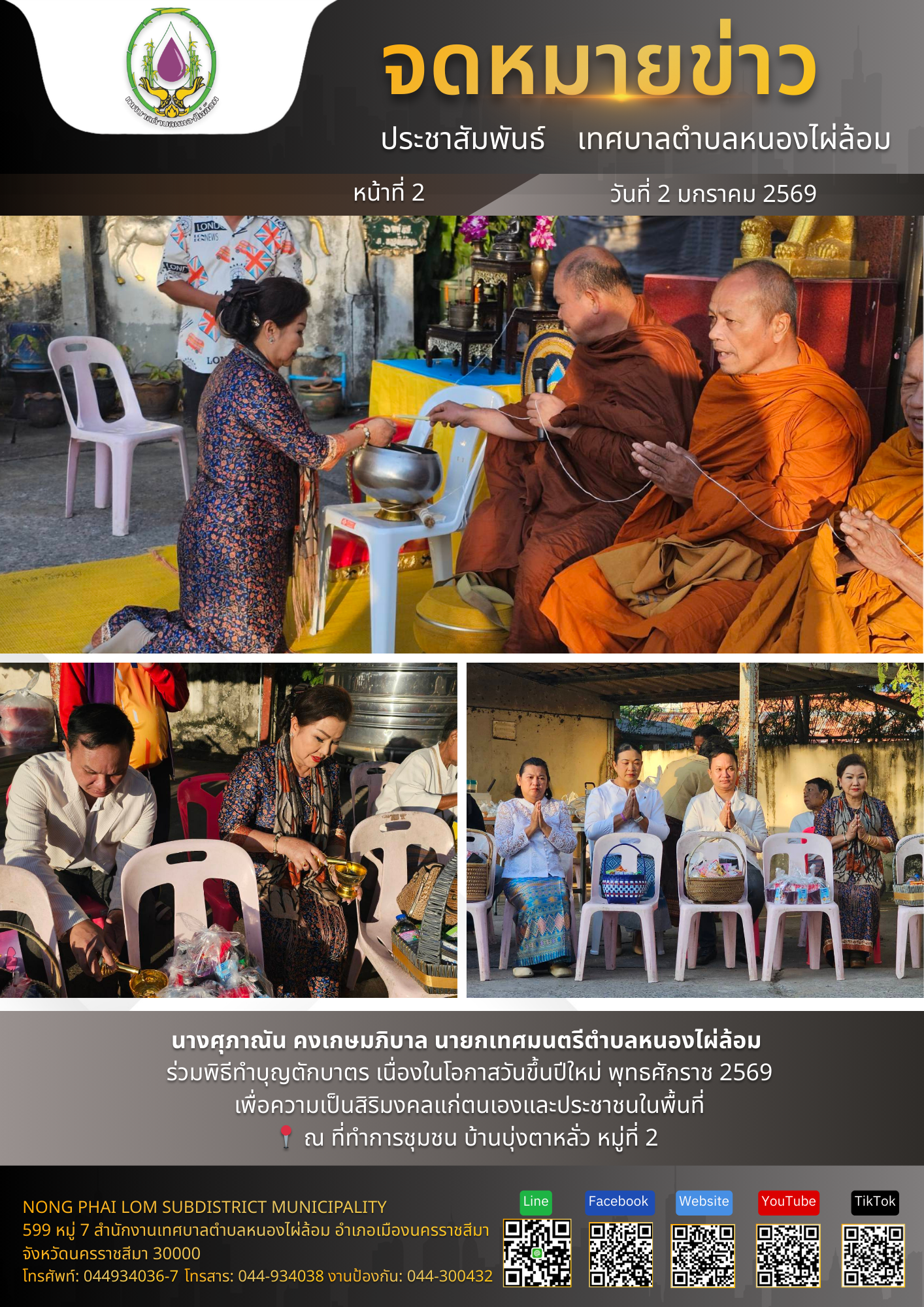 จดหมายข่าวเทศบาลตำบลหนองไผ่ล้อม ฉบับประจำวันที่ 2 มกราคม 2569